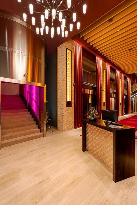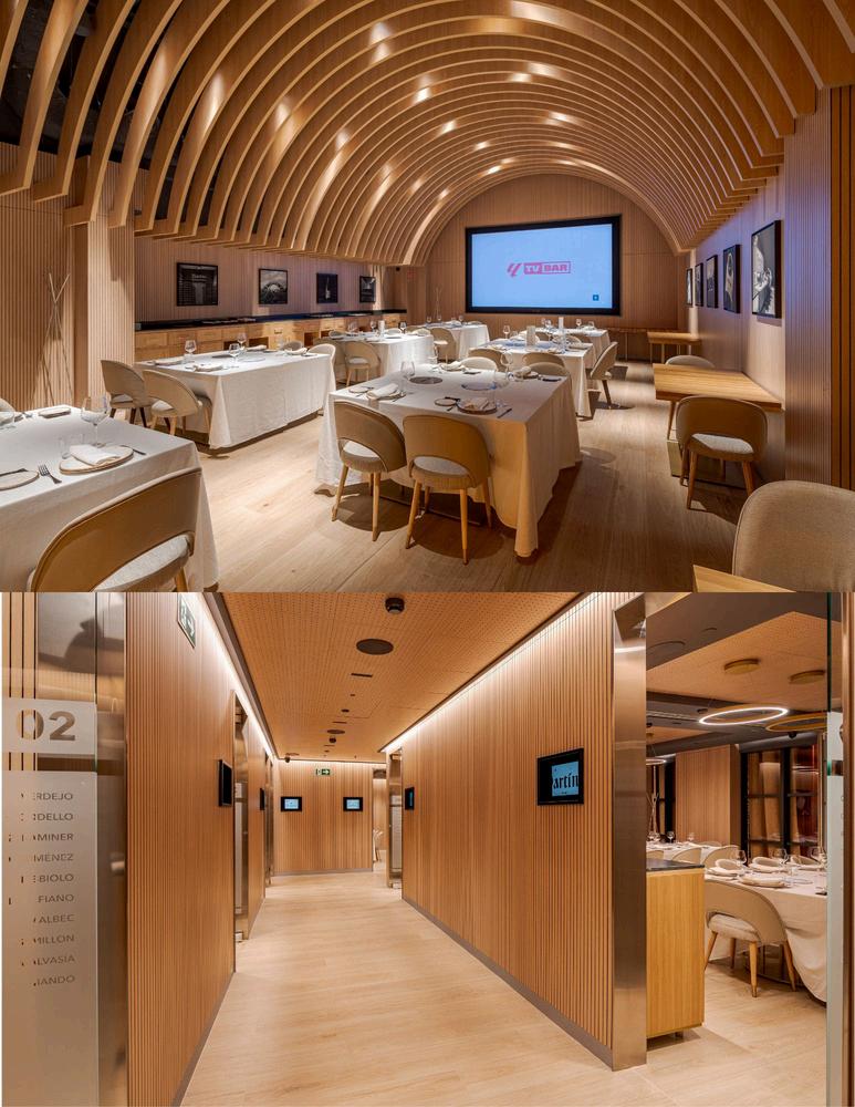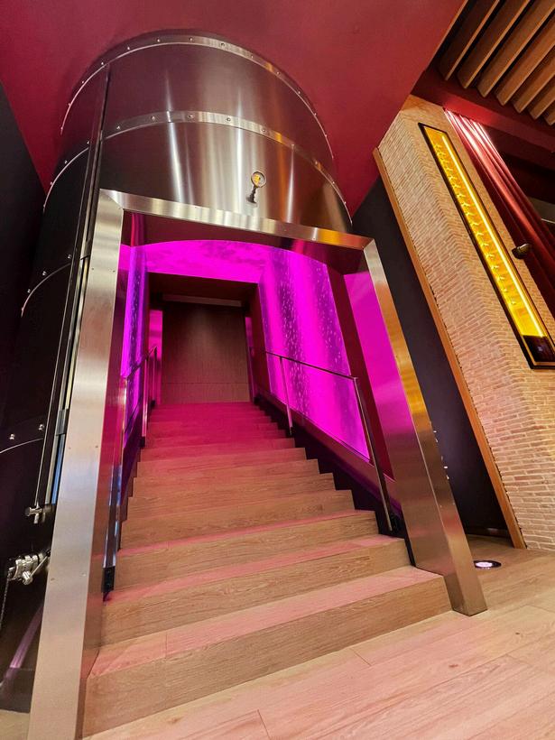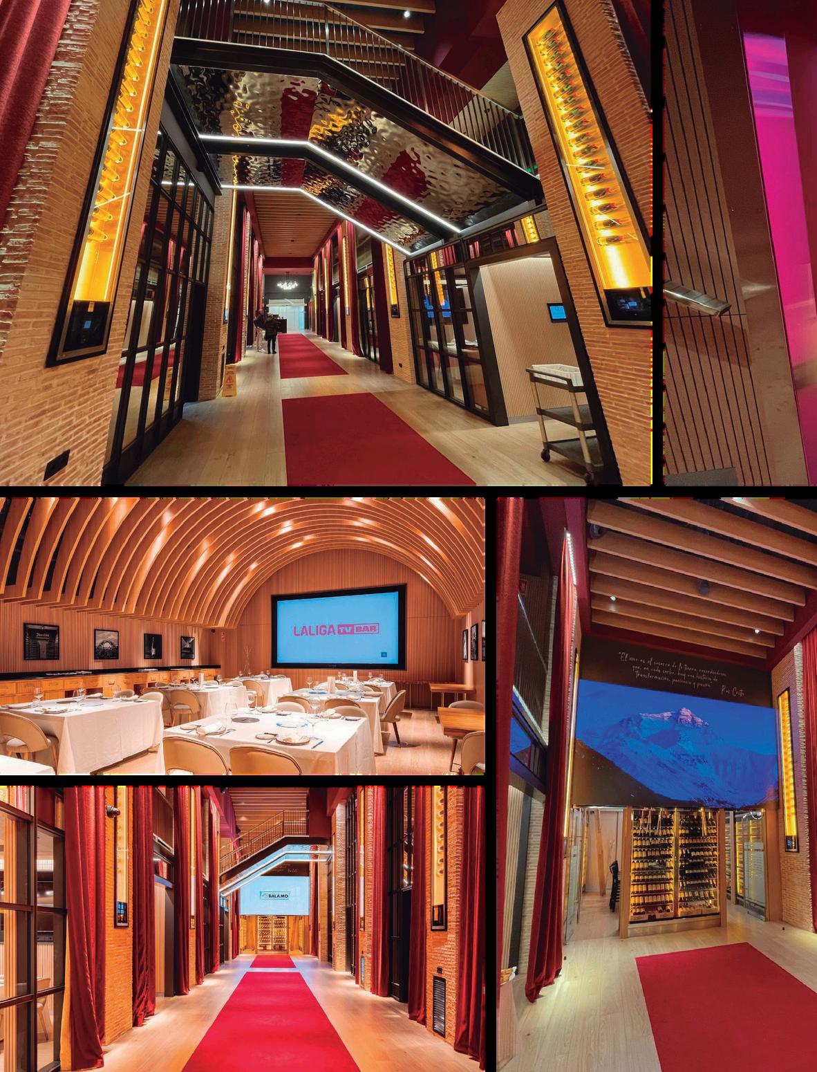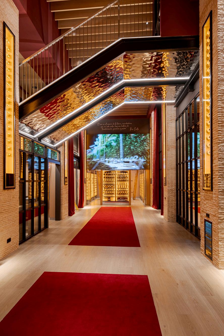 En la zona de la bodega se ha instalado una pantalla LED que proyecta contenidos inmersivos relacionados con las referencias vinícolas y la historia del vino Racimos, uvas, texturas y paisajes líquidos se combinan con la arquitectura para crear una armonía perfecta. Además, los 16 reservados privados, apadrinados por bodegas de prestigio, están equipados con pantallas LED y diseñados para catas, maridajes exclusivos, encuentros íntimos, manteniendo la estética inmersiva de todo el espacio