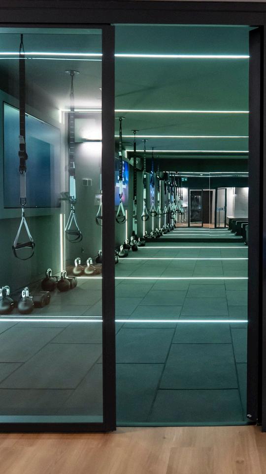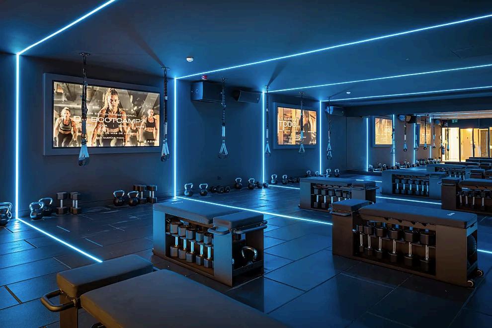 Desde el Boxeo Urbano, pasando por el Yoga, Pulso HIIT, Beat Cycling que vence al ciclismo hasta el gimnasio y la recepción, cada espacio combina iluminación digital dinámica, sonido envolvente y pantallas LED de última generación para que el entrenamiento sea único y dinámico. Además estos espacios se convierten en salas ágora, espacios versátiles para eventos y formaciones.