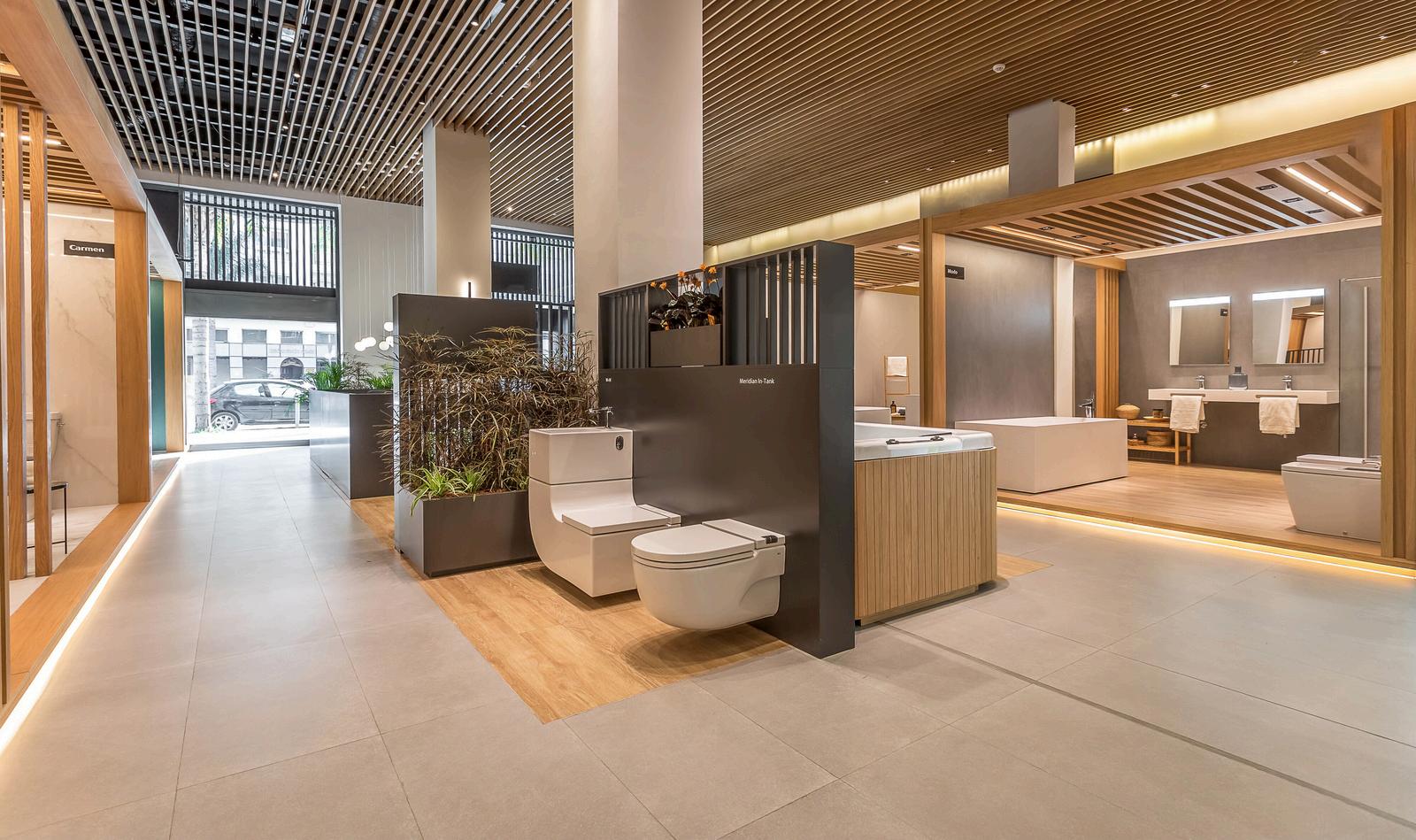 El objetivo de esta obra integral era crear un espacio de innovación y alto standing para presentar los últimos productos de las marcas ‘Roca’ y ‘Armani’, orientado hacia los usuarios y/o profesionales que comparten su interés y motivación por el diseño del espacio del baño y confort en el hogar