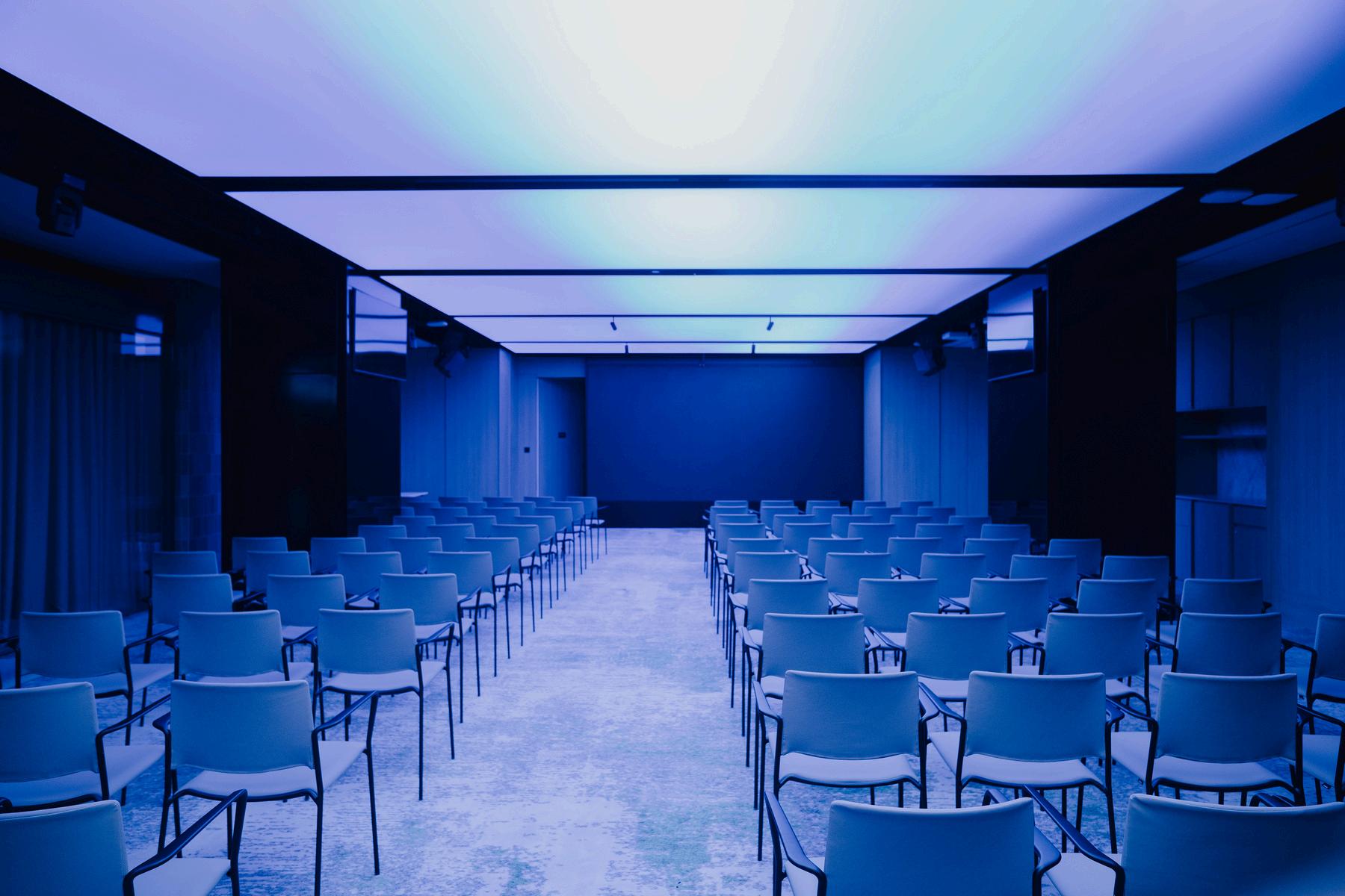 La iluminación de la sala, está compuesta por un grid de video de pitch37,5mm, embellecido en su parte frontal con un policarbonato especialmente diseñado para este espacio Permiten crear nuevos efectos como cambiar el color de la iluminación con contenidos sincronizados e incluso al ritmo de la música, transmitir mensajes para eventos en tiempo real.