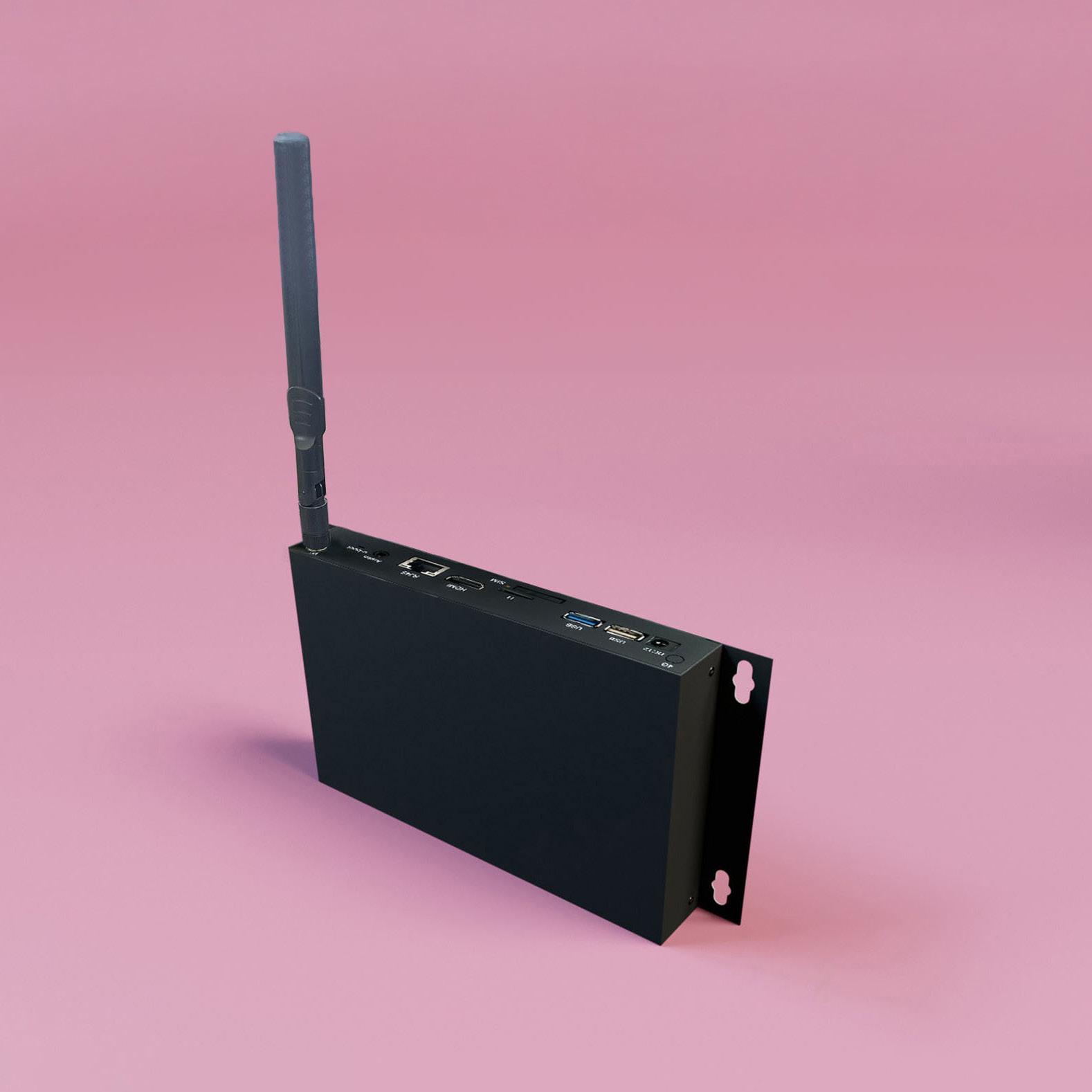 Our media player, which is standardly integrated into our displays as a built-in board, is also available as a standalone box with a metal housing. It can be connected via HDMI to existing screens, enabling seamless content management