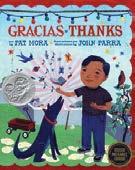 Gracias • Thanks • written by Pat Mora, illustrated by John Parra • In a series of poetic sentences, a young boy talks about some of the everyday things for which he is thankful in this Pura Belpré Illustrator Award Honor–winning book.