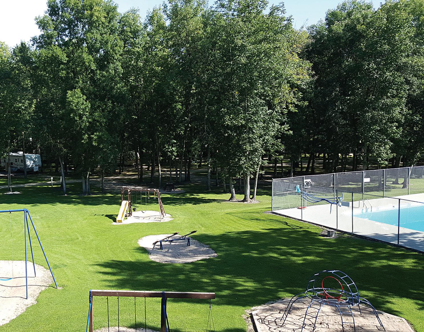 Conveniently located on Hwy #1, 35 minutes west of Winnipeg and 10km east of Portage La Prairie on Trans Canada Hwy #1. Large full-service pull-thru sites available with mature trees. Large heated pool, Wi-Fi, games room, playground, ice cream, convenience store, fire wood, clean washrooms, showers, laundromat, basketball, sand volleyball and horseshoes, Big rigs welcome. Highest rated Good Sam Park in Manitoba.