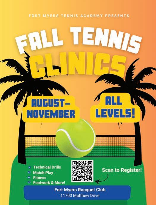 JoinFortMyersTennisAcademythisfallfor tennisclinicsforallplayersages3+!Across8 beautifulclaycourts,youwillfindtennisplayers ofallagesandabilitylevels:fromBeginnersto HighPerformance.Weareacommunityofplayers,parents,coachesandfriendswhosegoalis tosupportourathletesandhelpthemdevelopa skillforlifewithtennis!Seeyouonthecourts!
