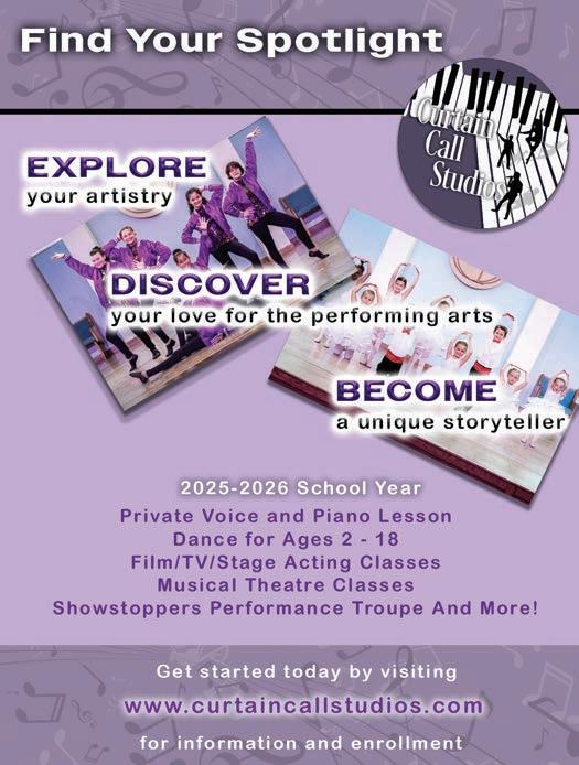 Weareyouronestopshopfortheperformingarts!Youcantakeprivatelessonsandgroup classesinmultipleperformingartsgenresallin oneplace!WealsoofferIndividualizedinstruction,eveningroupclasses.Everystudent receivesindividualizedattentionbecausewe keepourclasssizessmall.1:1lessonsare cateredtoeachstudent’sspecificgoalsand needs.Registeronline.