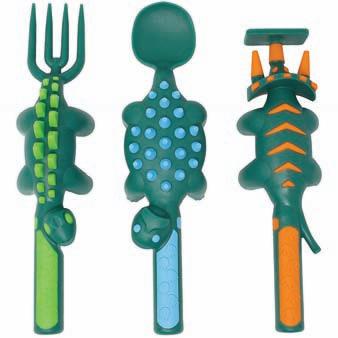 Designed to fit and work together with the Dino Utensil Set. Dino footprints divide each section with specific locations for the fork, spoon, and pusher to rest when not being used to eat with. Combines fun, adventure and mealtime!