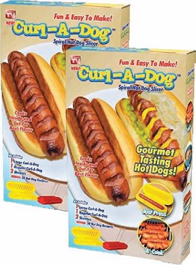 Fun and easy to make, the Curl-A-Dog Spiral Hot Dog Slicer slices into your hot dog allowing it to char inside and out. The curls cre ate flavor pockets to hold condiments for extra flavor.