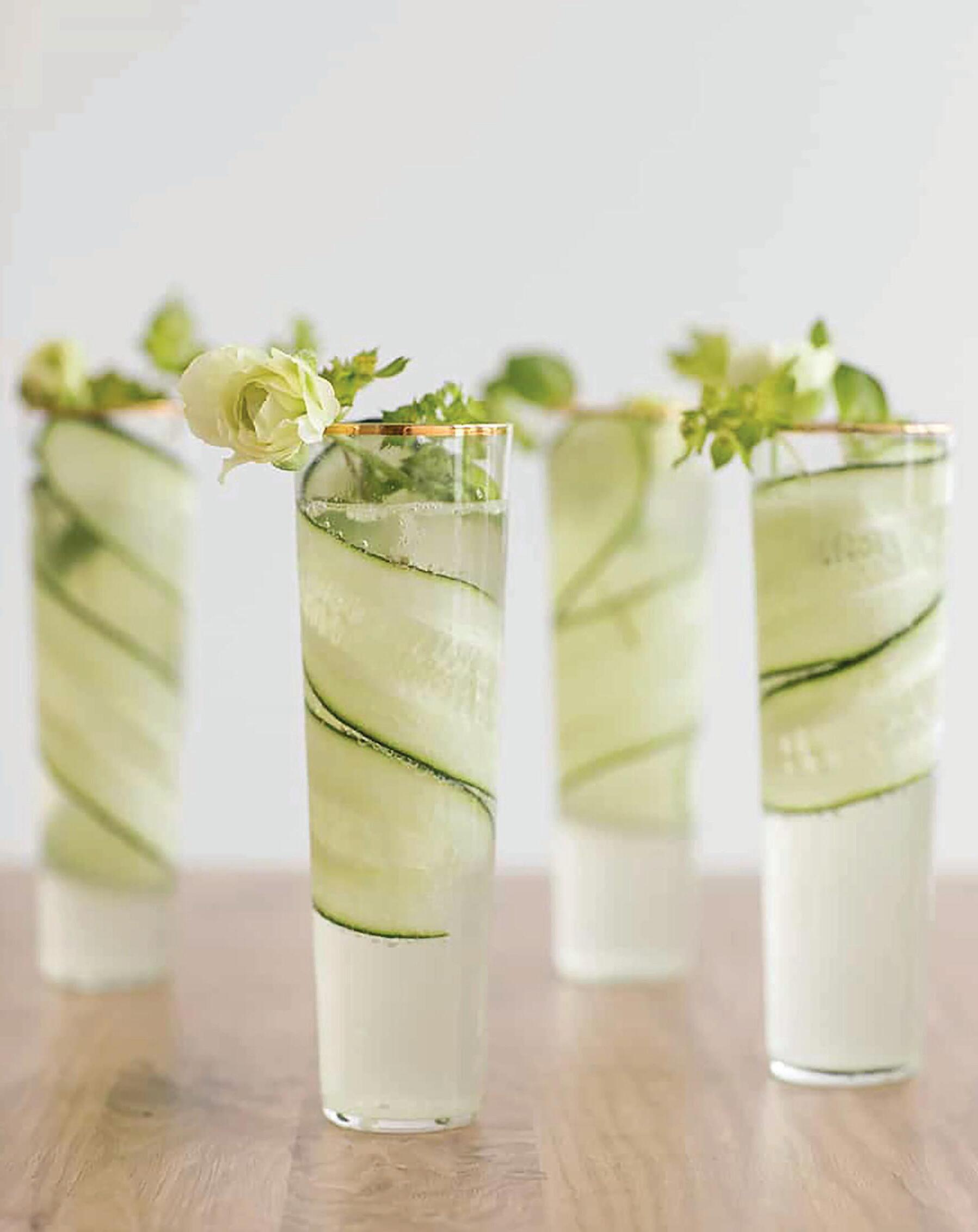 In a shaker, add the gin, lime juice, simple syrup and cucumber slices. Gently muddle the cucumber to release its flavors. Fill with ice and shake vigorously for 30 to 40 seconds. Strain into a coupe or tall, thin glass. If using a tall glass, create a pretty effect, as in the picture, by lining the inside with a long, thin, spiral cut cucumber slice.