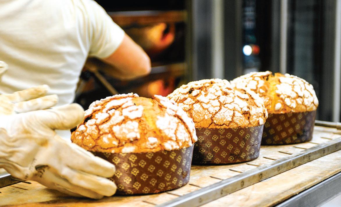 This page, from top: Bedrooms at the Excelsior Hotel Gallia have panoramic views of Milan; Italian Christmas cake is a must-try; cocktails from Camparino in Galleria do not disappoint. Opposite page, from top: There’s no shortage of elegantly dressed visitors at Piazza del Duomo; Acanto at Hotel Principe di Savoia serves creative twists on classic Italian dishes.
