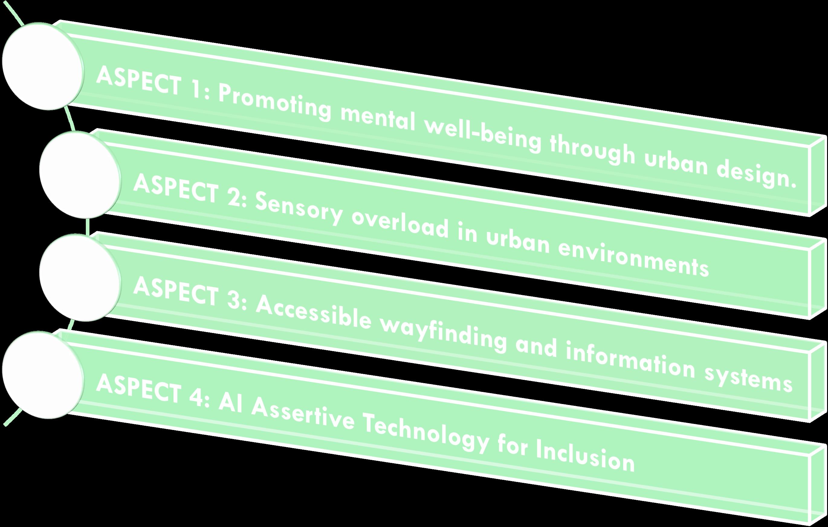 This research project investigates how to create inclusive and healthy cities that cater to the specific needs of people with neurodiverse conditions, such as autism spectrum disorder (ASD) and attention deficit hyperactivity disorder (ADHD) . It recognizes that the built environment can significantly impact the well - being of neurodiverse individuals and aims to identify strategies for creating more inclusive & supportive urban spaces.