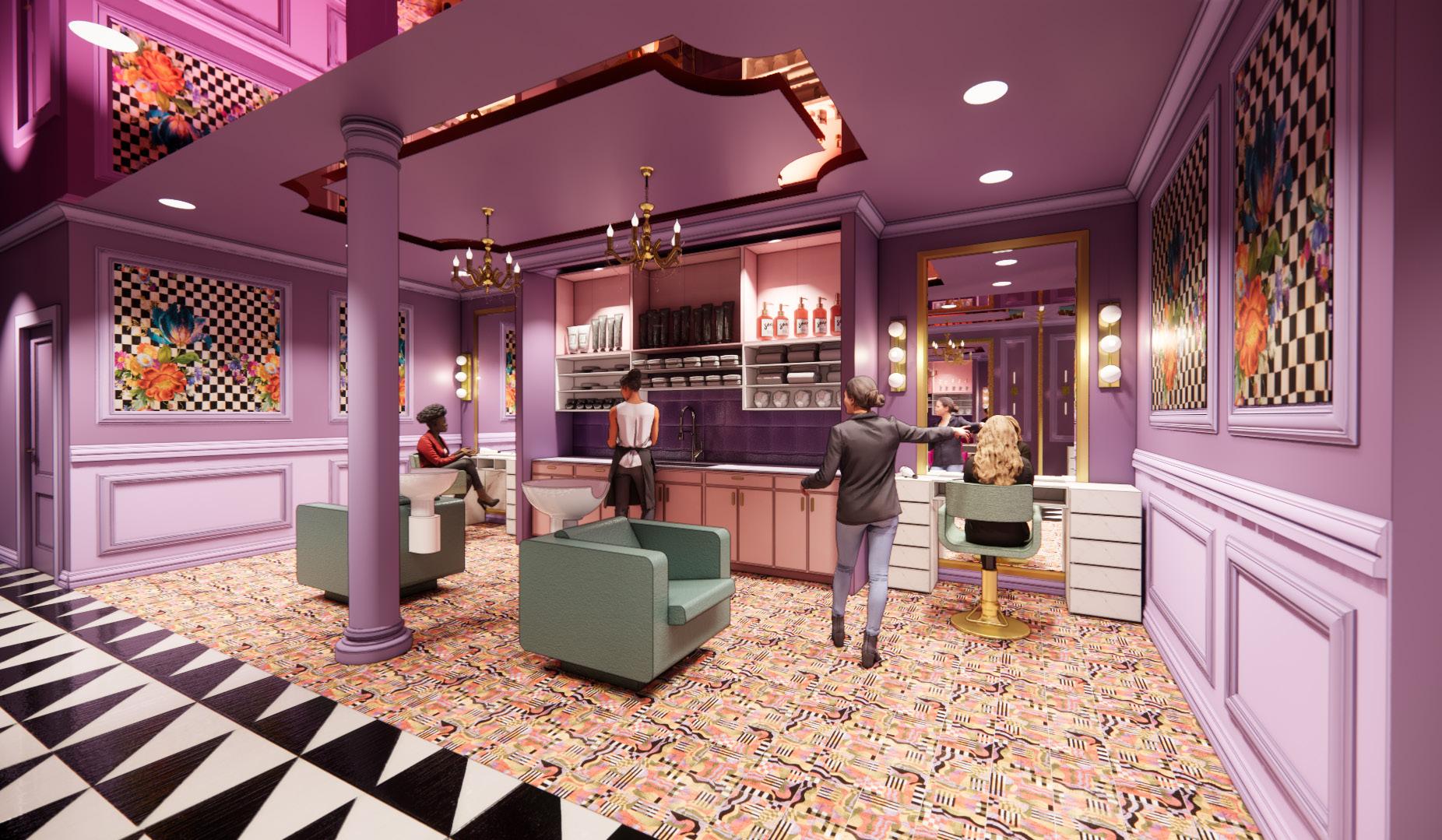 Lustre is a luxury hair salon inspired by Iris Apfel, blending Art Deco elegance with bold, eclectic style. Designed for a long, narrow space, it ensures openness and privacy using fluted glass, sculptural furniture, and layered textures. A rich jewel-toned palette with gold accents enhances its vibrant yet sophisticated ambiance. With a grand reception, custom styling stations, and private esthetician rooms, Lustre merges historic charm with modern luxury, creating a glamorous, high-end destination for beauty and self-expression..