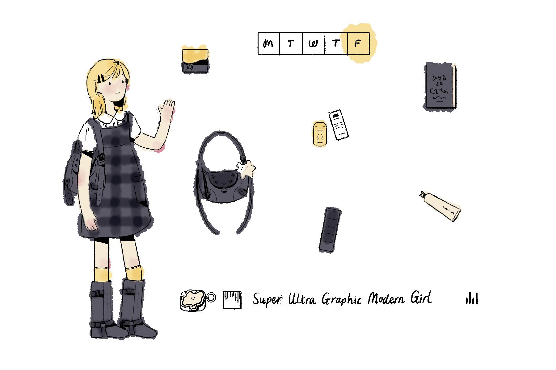 Daily activities of a week, shown through outfits and the things that I bring along with me.