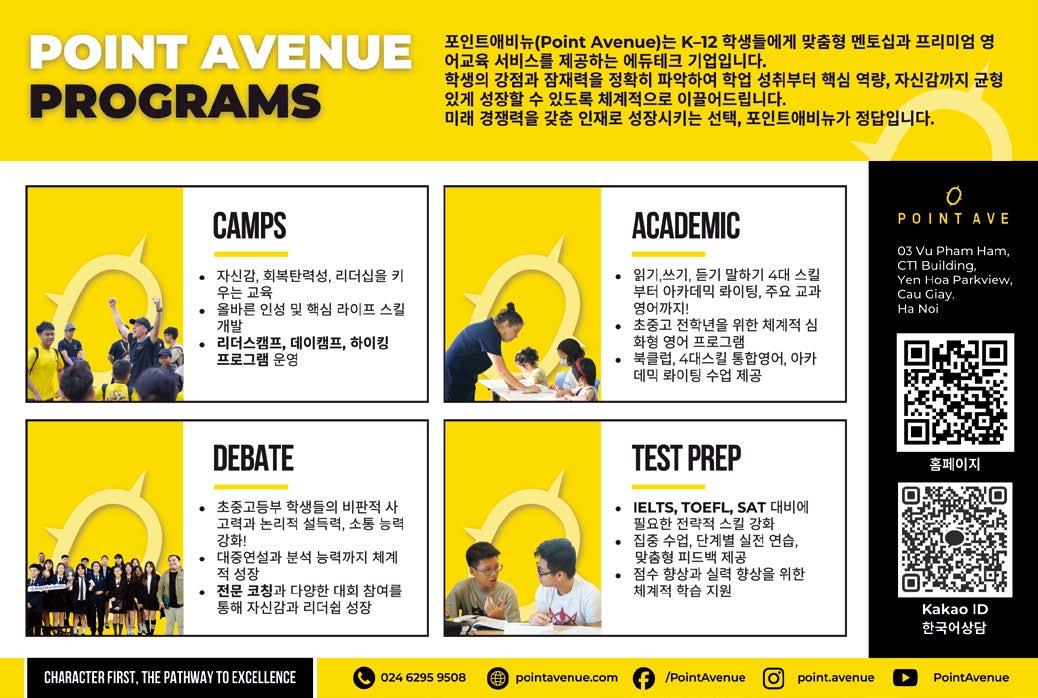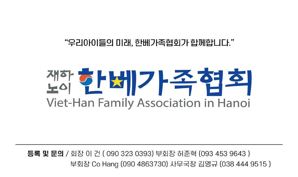 안녕하세요. 베트남의 긴 설연휴로 마음의 여유를 갖게 되는 2월입니다. 한인회는 새해에도 여러분들의 해외 생활이 더욱 풍요로워 질 수 있도록 더 욱 다채롭고 역동적인 문화강좌 프로그램을 편성해 나가겠습니다. 한인회 문화강좌와 함께 동호인들과 교류하며 생동감 넘치는 생활이 되시기 바랍 니다. 한인회 문화강좌의 문의 및 접수는 보다 명확하고 자세한 정보제공을 위해 해당 강좌의 선생님께서 직접 안내와 접수를 받고 있습니다. 수강을 원하시는 교민께서는 담당 강좌 선생님께 직접 문의, 신청해 주시기 바랍니다. (강좌 별 연락처는 우측에