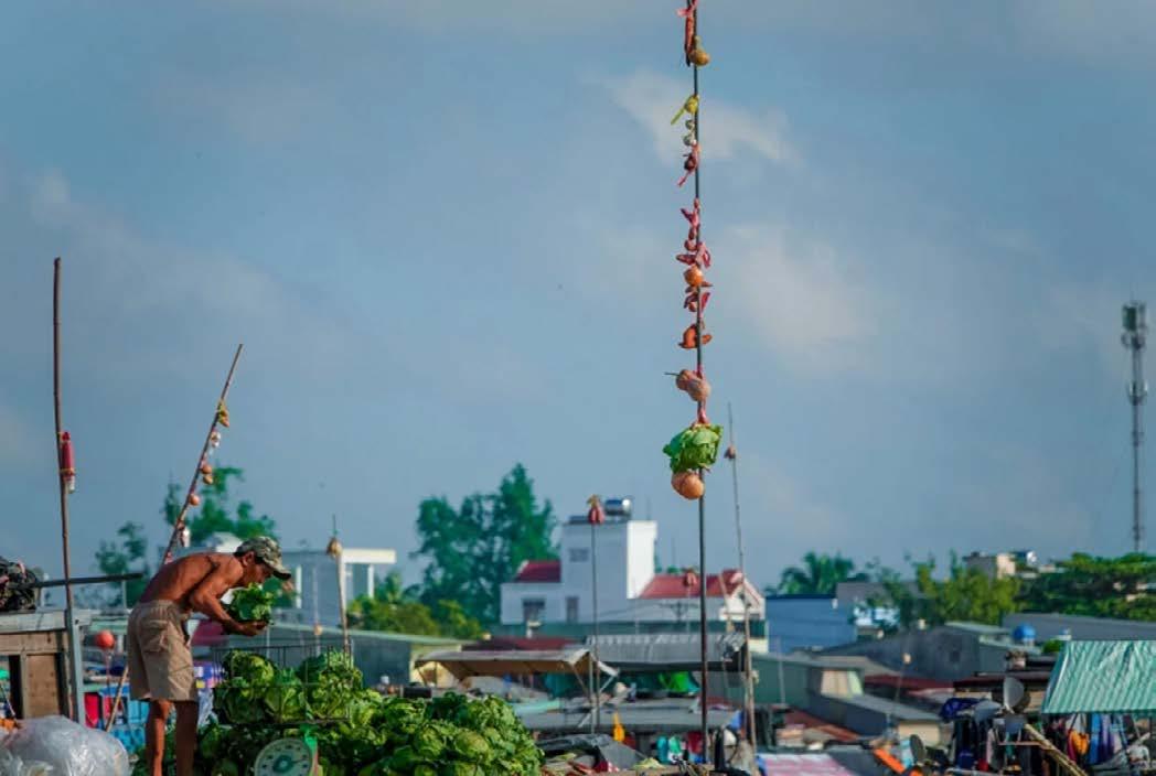 께이베오(câybẹo)는 강위에서 살아가는 사람들에게 가장 솔직한 소통의 언어가 된다. 께이베오(câybẹo)는 수상시장에서 탄생한 매우 영리한 시각적 광고방식이다. 간판을 너무 높이 달면 강한 바람에 흔들리고 너무 낮게 달면 멀리서
