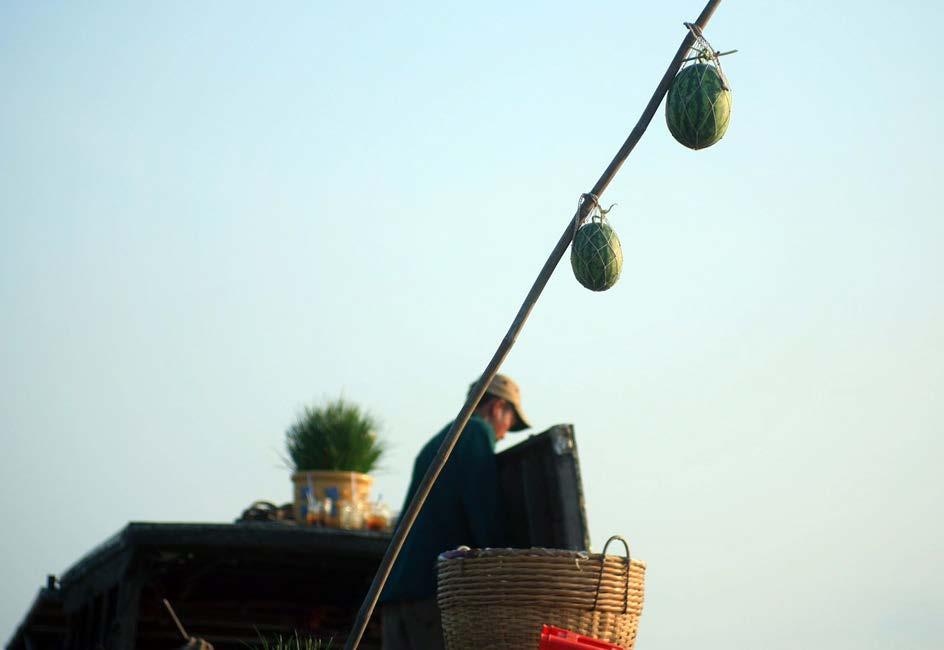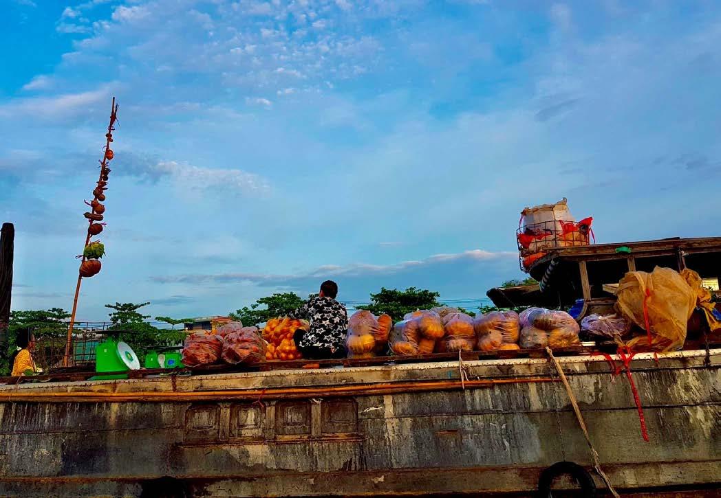 서남부 메콩강 지역의 수상시장. 잔잔하게 흐르는 물결 위, 배의 뱃머리에는 말없이 하늘을 향해 솟아 있는 께이 베오(câybẹo)가 있다. 소박한 대나무 기둥위에는 파인애플 몇 개, 바나나 한송이, 혹은 고구마 한 묶음이 걸려 있을 뿐 이며 외침도 간판도 필요하지 않다. 사람들은 시선과 물건, 그리고 느리게 흐르는 강물의 리듬으로 서로를 이해한다. 이 조용한 풍경 속에서 께이 베오(câybẹo)는 수상 생활의 이야기를 묵묵히 전한다.꺼이베오(câybẹo)는 까이랑(Cái Răng)을 비롯한 메콩강 서남부 수상시장에서 사용되는 독특한 광고방식이다. 상인들은 배 앞에 긴 장대를 세우고 자신이 파는 물건의 일부를 걸어둔다. 서남부 방언에서 'bẹo‘가 '드러내다, 진열하다’라는