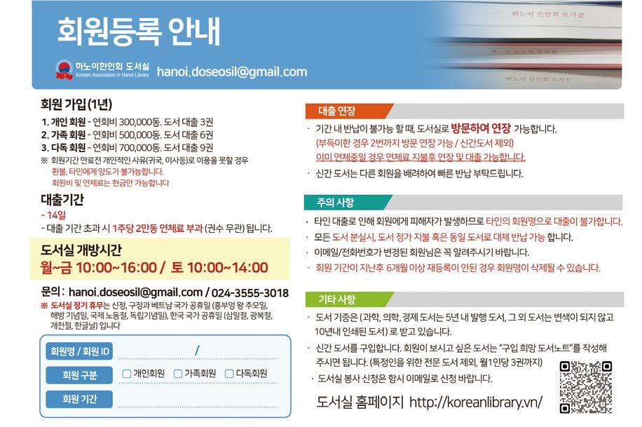 하노이 한인회 도서관 ‘희망 도서 신청 안내’