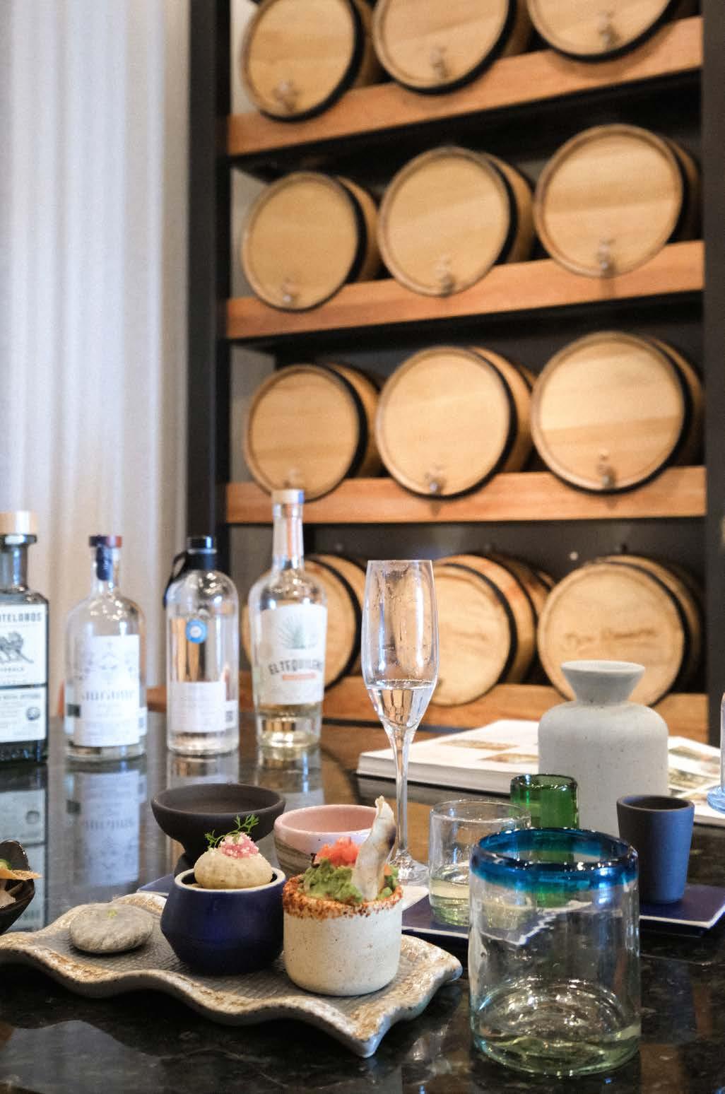 As the sun began its descent, we climbed to Nukari’s rooftop terrace. The timing was perfect: golden hour, or rather purple hour, as the sun slipped directly behind the basilica, its glow framed by the bell towers like a living painting. Dinner unfolded course by course, paired with glasses from Meseta del Cielo, Nayarit’s first vineyard. Just 45 minutes from Jala, the vineyard thrives in a rare highland microclimate where volcanic soil and cool breezes coax European grape varieties into flourishing.
