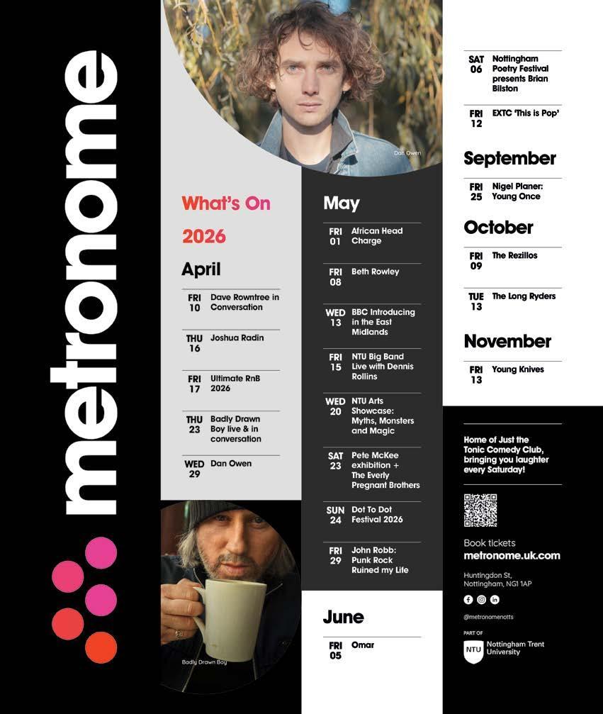Elsewhere, we’ve been speaking to influential poet and cultural historian Panya Banjoko about her new StoryArcs fellowship (p.35), dipped into some musical jam nights (p.18) and taken a look at the accomplishments and future of the Nottingham film industry (p.30), plus much more to pique your fancy.