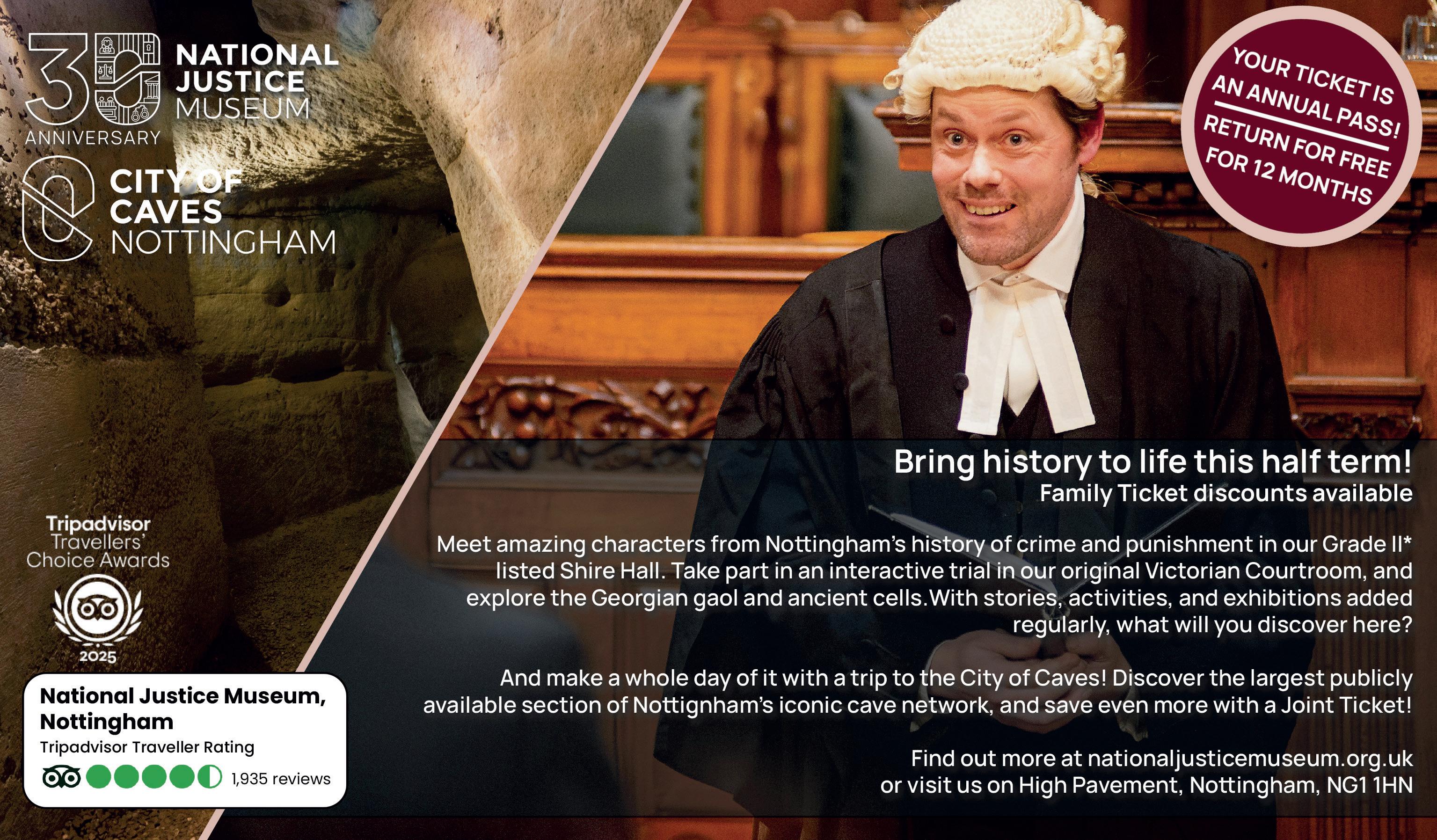 The latest in a series of murdermystery events that have been taking place at High Pavement’s award winning National Justice Museum. The story is set to be particularly fun and compelling – guests are invited to solve the mystery of a shocking murder at the launch party of a new magazine called You Got Judged Tickets include a cocktail or mocktail on arrival, and fancy dress is encouraged. The Justice Museum team also really knows their stuff when it comes to telling immersive stories about crime – head along and enjoy!