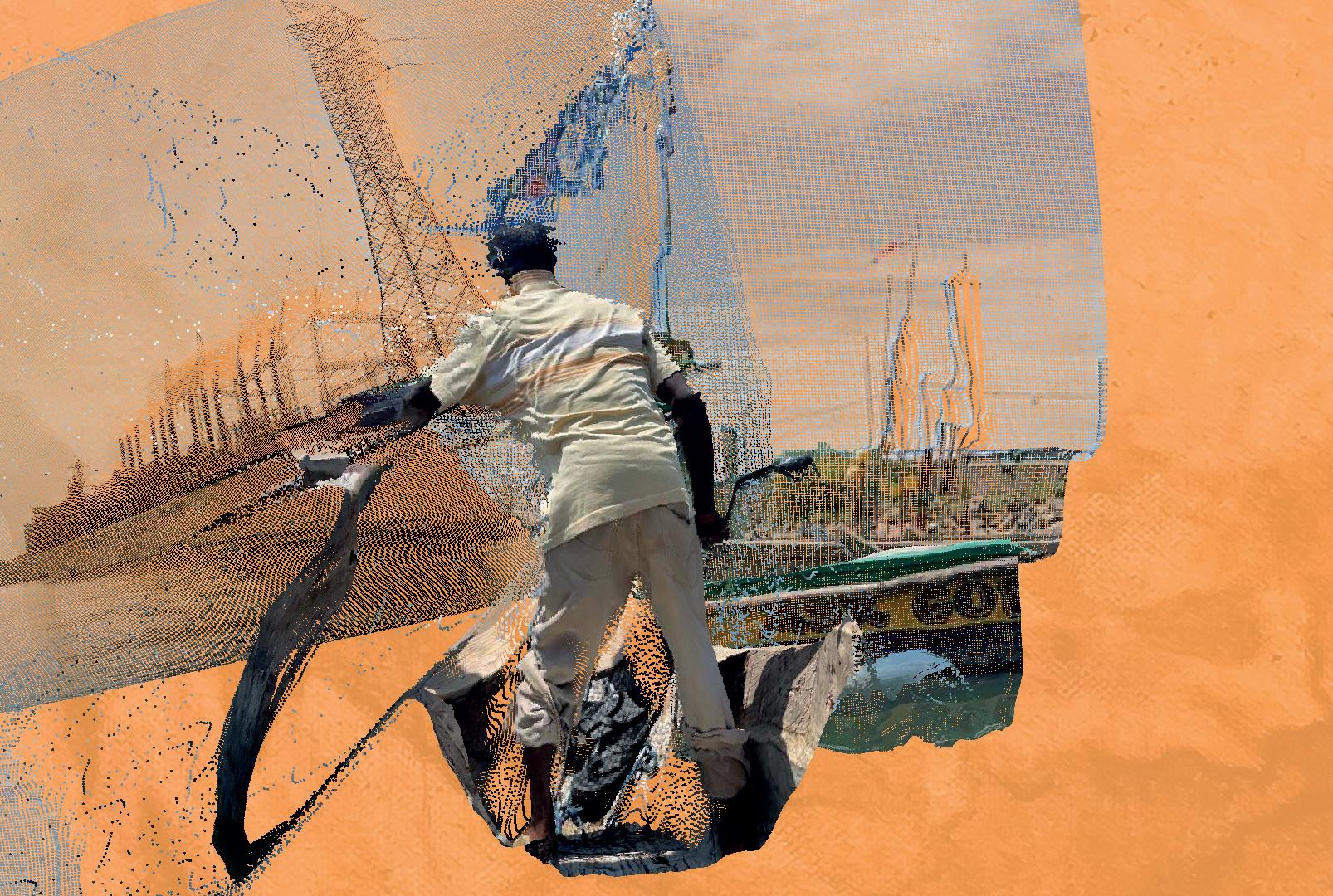 At the heart of the exhibition is a critical reflection on the deployment of temporary power ships off the coasts of various West African cities — an intervention intended to address unstable energy infrastructures and shortages. The title layt de kam, translated as ‘light is coming’, evokes both hope and uncertainty, highlighting the precarity of such power solutions while celebrating the enduring strength of coastal communities.