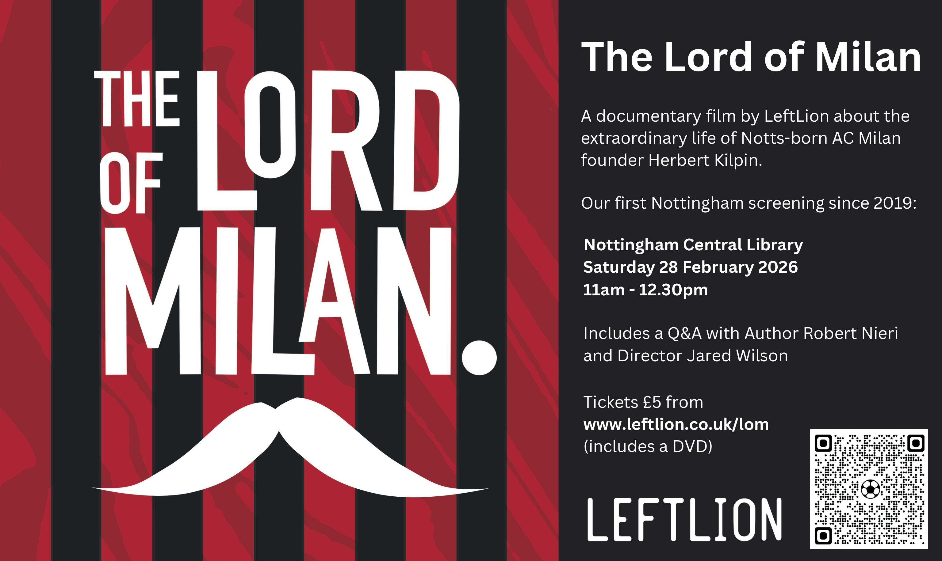 Herbert Kilpin was the founder of AC Milan – one of the world's most successful football clubs. He was born in Nottingham in 1870 before emigrating to Italy, going on to make history. In 2018, LeftLion produced a documentary about him, based on the book by Robert Nieri. This month, the film will be screened for the first time since 2019, with director Jared Wilson and Robert in attendance for a Q&A afterwards. Entry also includes a free DVD.