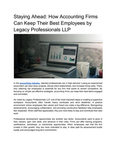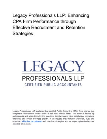 Legacy Professionals LLP is a Certified Public Accounting firm based in Westchester, IL, with additional offices in Schererville, IN, and Edina, MN. Serving clients across 36 states, the firm provides specialized audit and tax services to employee benefit plans, labor organizations, nonprofit entities, and other organizations. Additionally, it offers payroll compliance audit services to multi-employer benefit plans. The firm also boasts a strong Client Accounting & Advisory Services (CAAS) team, delivering outsourced accounting and advisory services to nonprofits and other entities. This unique service offering sets the firm apart by addressing the specific needs of a diverse client base. Founded in 2003 by a group of partners, principals, and professionals, Legacy was created to provide expert audit, accounting, and compliance services tailored to employee benefit plans, labor organizations, nonprofits, and other entities. Over the years, the firm has built a solid foundation on which its third-generation leadership continues to thrive. This leadership maintains a commitment to the highest quality audit and accounting services, ensuring that clients benefit from a firm that specializes in their unique industries. Its dedication to niche-focused services has been central to its growth and success, both for the firm and its clients. The mission of Legacy Professionals LLP has always been clear: to provide a consistent level of high-quality audit and tax services to employee benefit plans, labor organizations, nonprofits, and other entities. This mission reflects the founders' recognition of the need for specialized, high-quality services tailored to the unique needs of these sectors. From the beginning, the firm's leadership understood that offering tailored solutions to these specific types of organizations would allow them to provide exceptional value and build lasting relationships.