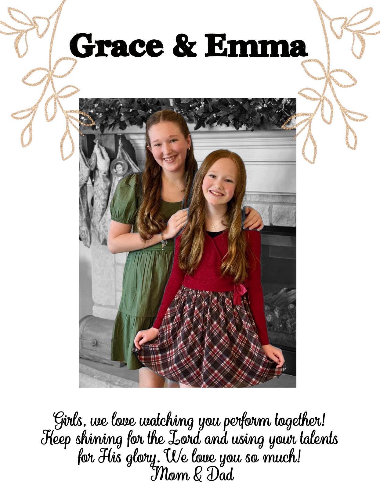 Watching you perform is such a blessing! We are so proud of the young lady you have become. As you step on the stage, know you bring us so much joy and we are your biggest fans! Go shine God’s light bright - on and off the stage. He has great plans for you!