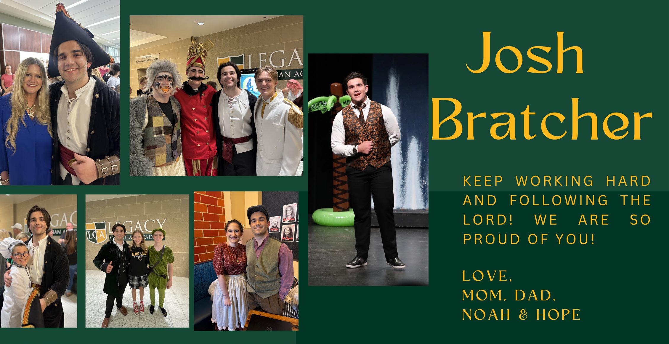 We are so proud of your dedication, leadership, and passion that you bring both on and off the stage. Watching you grow into a strong young man that loves the Lord is such a blessing. Your hard work and passion to try new things are inspiring and we love seeing you share your gifts with others. Continue to trust God as He guides every step of your journey.