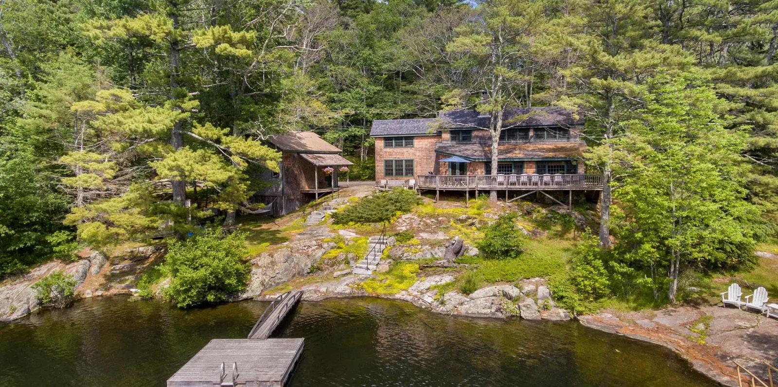 Set on 2,000 feet of pristine waterfront, this extraordinary Maine compound features three unique residences—the elegant Main House, charming Cabin, and rustic Bunkhouse—surrounded by remarkable coastal scenery. Built by the Knickerbocker Group, the shingle-style Main House blends classic early20th-century cottage architecture with modern comfort, offering three bedrooms, bonus spaces, sailloft sleeping, air conditioning, and a screened porch for outdoor dining. The meadow-set Cabin provides sweeping ocean views, two queen bedrooms, a kitchen, bath, and private deck. The nearby Bunkhouse adds classic Maine charm with bunk sleeping and an outdoor shower. Enjoy paddleboarding, fishing from the dock, scenic walking trails, a game room, and fire pits, all near Boothbay, Wiscasset, and the Coastal Maine Botanical Gardens.
