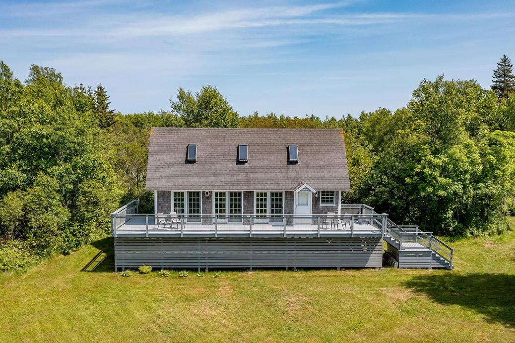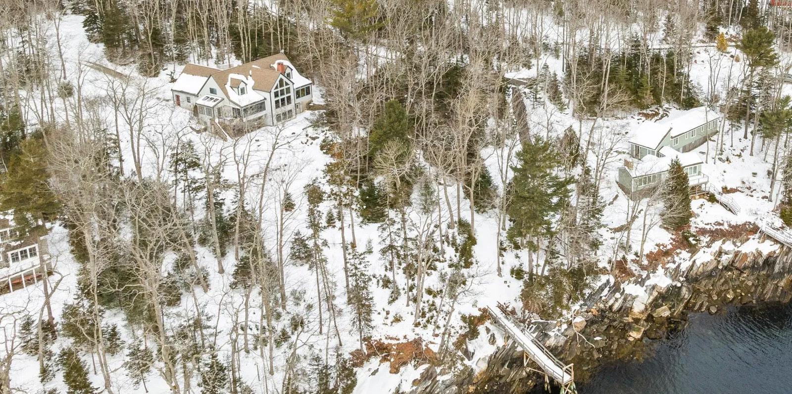 This elegant home offers a serene escape, surrounded by lush trees and perched with a stunning westerly view over Parsons Point and the Sheepscot River. The home is beautifully designed, showcasing meticulous attention to detail and a unique character that captivates from the moment you enter the foyer, where a breathtaking panoramic river view unfolds. The main floor is an open-concept great room, seamlessly blending living, dining, and sitting areas, perfect for relaxation and social gatherings. The kitchen leads to a spectacular three-season room, enclosed in floor-to-ceiling glass, offering an immersive nature experience. A sprawling, tiered deck extends along the front of the house, inviting guests to unwind and entertain in an idyllic setting. Additionally, the first floor hosts a cozy den/TV room with a sofa bed. The primary bedroom is a private retreat with a full bathroom, complete with its own deck, offering intimate views of the surroundings. The second floor features two more bedrooms and a bathroom, with enough space for all of your guests.