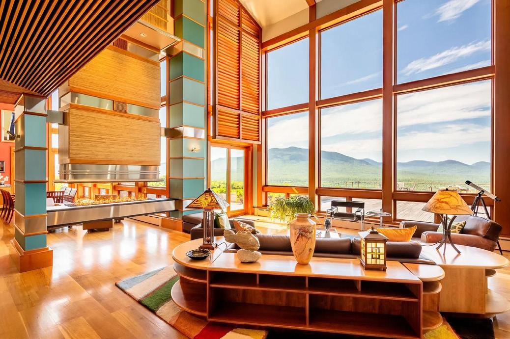 Light-filled interiors feature oversized windows and doors, central air conditioning, and high-speed Wi-Fi. The main and second floors offer spacious bedrooms—several with workspaces and private or semi-private decks— while the primary suite includes a spa-inspired bath with steam shower, massage tub, and sauna. A lower-level bunk room with adjacent game and TV room provides additional space for larger groups and younger guests.