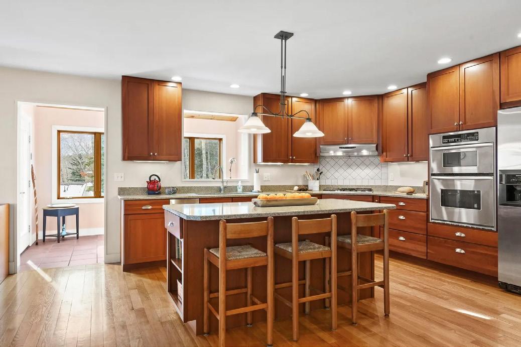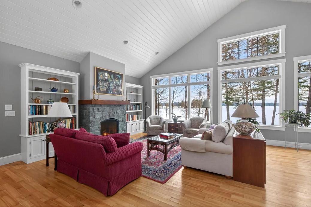 This stunning luxury lakefront retreat in Maine’s scenic Sebago Lake Region offers a rare blend of tranquility, comfort, and natural beauty—perfect for families, friends, or couples seeking a peaceful escape. The grand living space features soaring vaulted ceilings with exposed beams, floor-to-ceiling windows capturing breathtaking lake and forest views, and a striking stone fireplace. Rustic elegance continues throughout with wood-paneled walls, hardwood floors, and a gourmet kitchen with a 6-burner range, dual ovens, and custom concrete countertops. The property includes a main house and separate guest house, both with kitchens and full baths, plus loft spaces for additional sleeping. Enjoy decks, patios, a hot tub, outdoor kitchen, and beautifully landscaped grounds. With 367 feet of private Peabody Pond shoreline, sandy beach, dock, and screen porch, this exceptional property offers the ultimate Maine lakefront experience less than an hour from Portland.