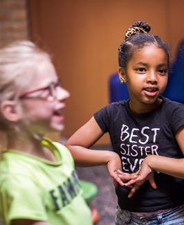 ‘Ik ben al anderhalf jaar lid, heel leuk. Ik ben hier met mijn beste vriendinnen Elilta en Hasset, zij wonen vlak achter mij. We vieren vandaag dat de koning gisteren jarig was – doen leuke spelletjes op het plein. We gaan ook wel eens naar het bos, of bakken dingen en knutselen. Het leukste vind ik dat we met z’n allen zijn, dat ik hier andere kinderen ontmoet. Ik kan ook op scouting gaan, maar dan moet je elke zaterdag om acht uur opstaan.’