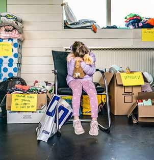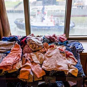 Op de vijfde verdieping van cruiseschip MS Volendam richtte Leger des Heils-medewerker Barbara Steen in korte tijd een complete kledingwinkel in. ‘Die eerste dag stonden al drommen mensen voor de deur, de vraag was groot’, vertelt ze. ‘Niet zo gek, mensen kwamen aan in winterkleding; kinderen speelden in skipakjes op het dek. Maar toen het hier warmer begon te worden, was er dringend behoefte aan wat luchtigere kleding en schoenen.’ Elke vluchteling krijgt een kledingtegoedbon waarmee hij of zij vijf stuks kleding mag uitkiezen, en kinderen zelfs meer. ‘Ook zomerjassen en sandalen. En rugzakjes, want ze gaan nu naar school.’ In een week tijd was de winkel in de Hudson Room op het schip ingericht, Barbara haalde de kledingrekken, hangers en duizenden stuks kleding aan boord vanuit de inzamelcentra van het Leger des Heils. Het resultaat is prachtig. Barbara: ‘Mensen vinden hun eigenwaarde terug als ze zelf iets mogen uitzoeken. Kleine meisjes dansen door de winkel, zo blij zijn ze.’