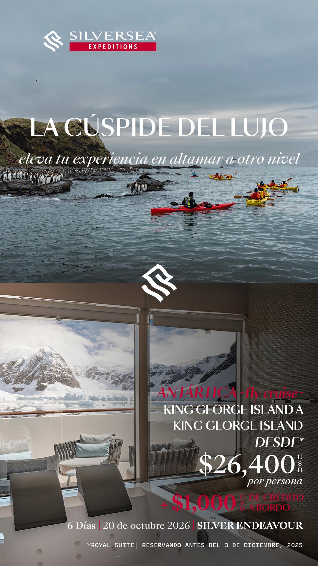 Promoción válida para nuevas reservas realizadas entre el 14 de noviembre de 2025 o hasta agotar stock (10 cabinas por zarpe).