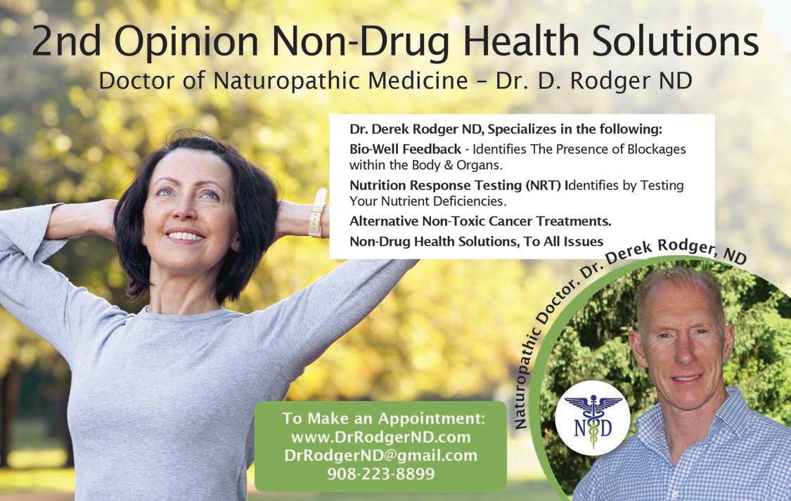 Due to his extensive background in business and marketing and built his own practice through the Natural Awakenings magazine he can take businesses to the next level. Also, with a strong background in keeping fit and understanding all aspects of exercising. He also teaches a Nutrition Certification Course over a 6-month period, students completing this course and passing all exams can put the designation CNC after their name. See ads, pages 3, 5 and 32.
