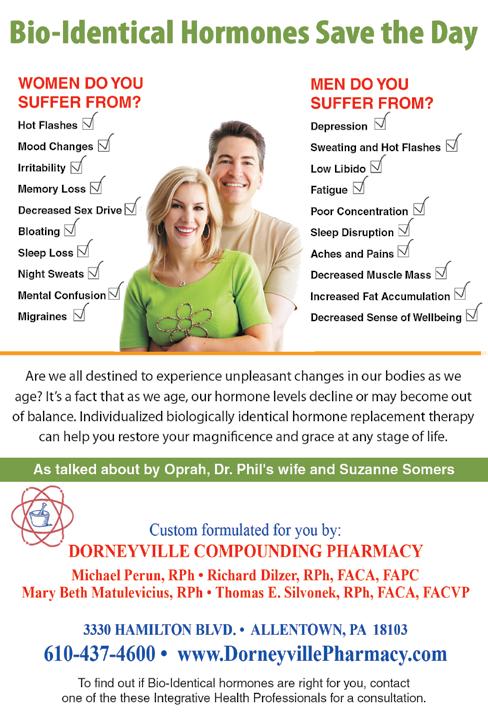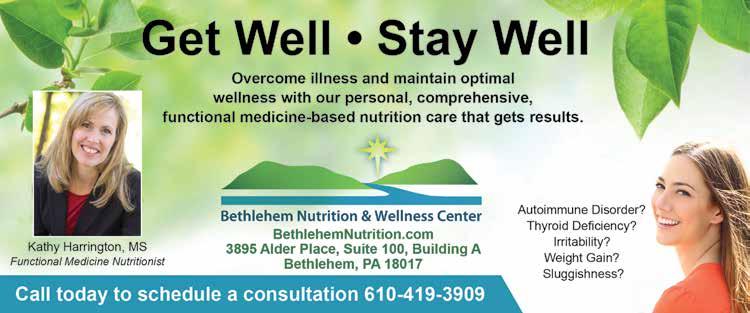 Bethlehem Nutrition & Wellness Center, we give you the tools to bring you and your family into a state of optimal health. Using the most advanced nutritional testing available, we look for the underlying cause of your health problems. Once the underlying cause is addressed not only do symptoms go away, but your overall health can also be greatly improved. See ad, page 11.
