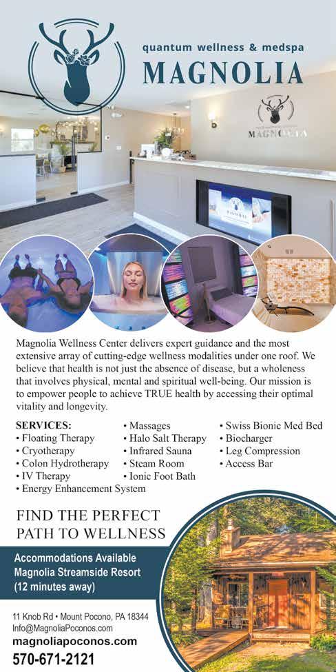 Magnolia Inn & Wellness Center is state of an art wellness hub that offers an extensive array of cutting-edge wellness modalities like Floating Therapy, Cryotherapy, IV Therapy, Colon Hydrotherapy and so much more. Our medical director, therapists, and staff are committed to helping our clients achieve TRUE health by accessing their optimal vitality and longevity. Membership programs are available and designed to make our services accessible to our local community. See ad, page 13.