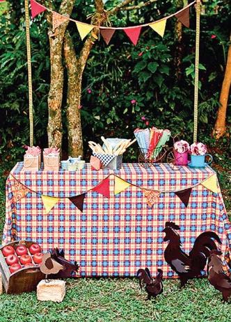 A decoração é um item essencial, ela reforça o clima animado e caipira do tema