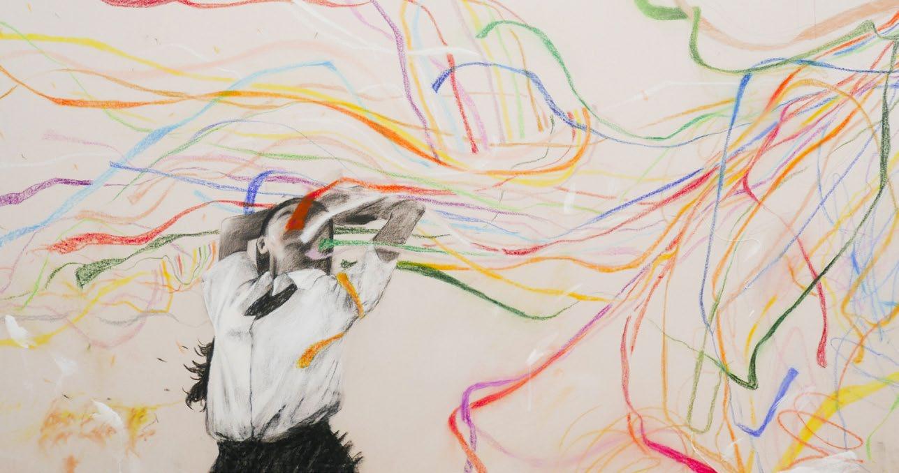 A dimensão biográfica também atravessa a exposição. Após sofrer um acidente que resultou na perda temporária de seus movimentos, Thainan Castro iniciou um processo de reabilitação que acabou transformando profundamente sua prática artística. Durante o período de recuperação no hospital, o artista passou a pedir que uma caneta fosse presa à sua mão, enquanto familiares, médicos ou visitantes movimentavam o papel de acordo com as coordenadas que ele indicava. O gesto, inicialmente terapêutico, tornou-se gradualmente um ponto de inflexão em sua linguagem visual. Com a recuperação física, o desenho passou a ocupar papel central em sua produção, funcionando simultaneamente como exercício corporal, prática de reconstrução motora e campo de experimentação artística.