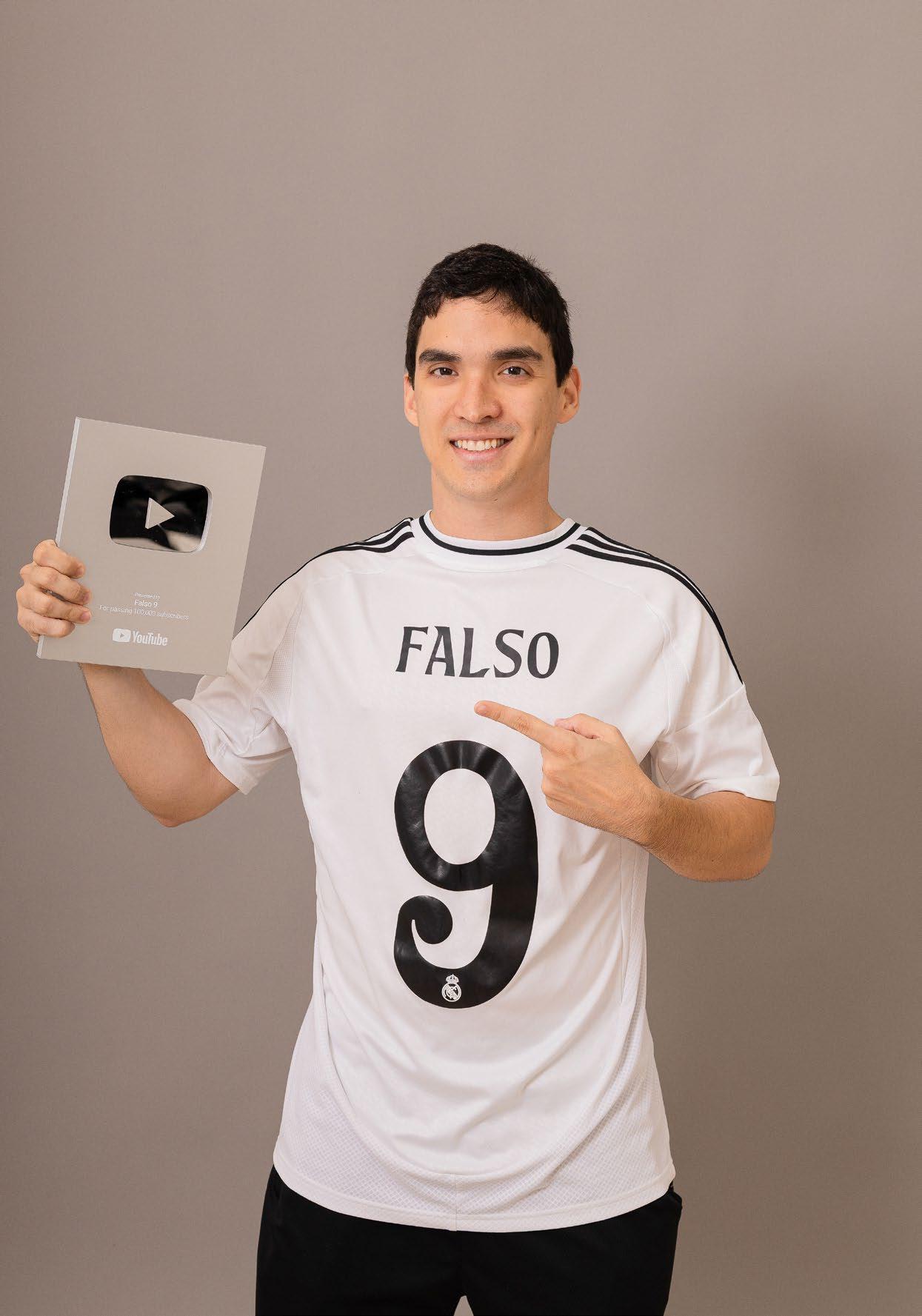 Criatividade, futebol e música. Essa é a tríade que deu origem ao Falso 9, canal que se consolidou no YouTube com paródias sobre o universo esportivo e já alcançou a marca de 100 mil inscritos, garantindo ao projeto a aguardada placa entregue pela plataforma.