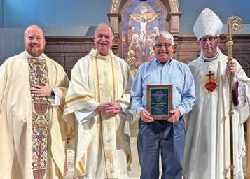 NOTRE DAME REGIONAL HIGH SCHOOL—The annual All-School Mass during Catholic Schools Week was celebrated in Notre Dame Regional High School, Cape Girardeau, on Jan. 30, with Bishop Edward Rice, Fr. Colby Elbert, Fr. Jesse Hiett, Fr. David Dohogne, and diocesan Superintendent of Catholic Schools Deacon Rob Huff. The community honored the life of JJ Bledsoe with the Bledsoe family in attendance, as Bishop Rice blessed a portrait of Saint Padre Pio that will hang in the halls of Notre Dame in his memory. Faculty members were also recognized for their years of service to Notre Dame. (The Mirror)