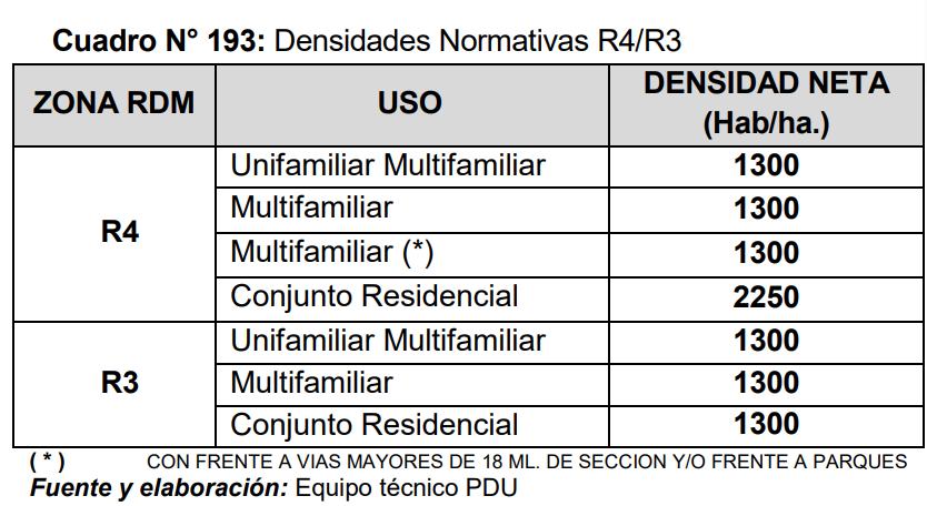 RESIDENCIALES DE MENOR DENSIDAD: las zonas habilitadas con zonificación R3 y se permitirá la construcción de densidad menor, siempre y cuando el propietario acuse conocimiento de la zonificación existente Cuando los lotes de estas zonas tengan un área menor al 50% del área normativa, podrán asimilar las normas de zonificación inmediata inferior correspondiente