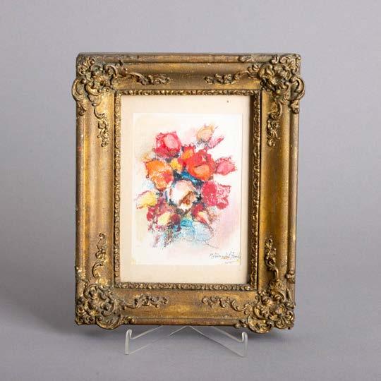 “Natureza morta - Flores” Técnica mista sobre papel, assinada. Pequenos defeitos.