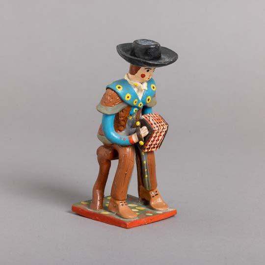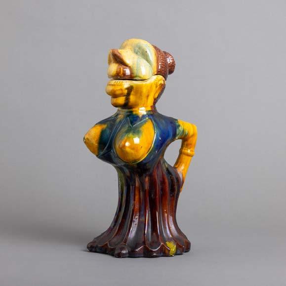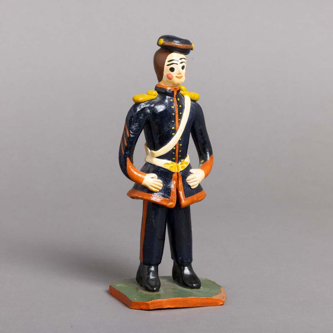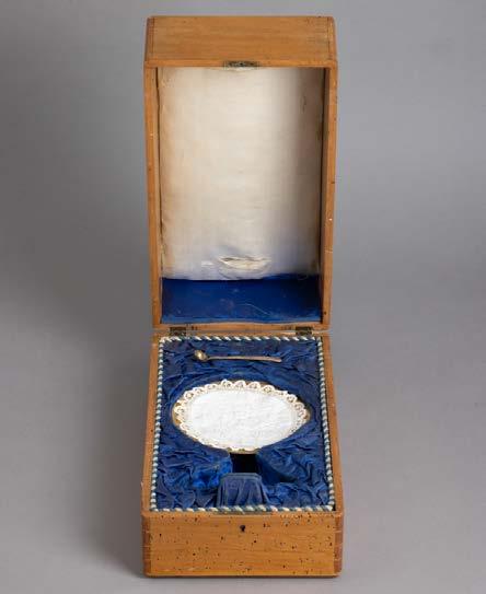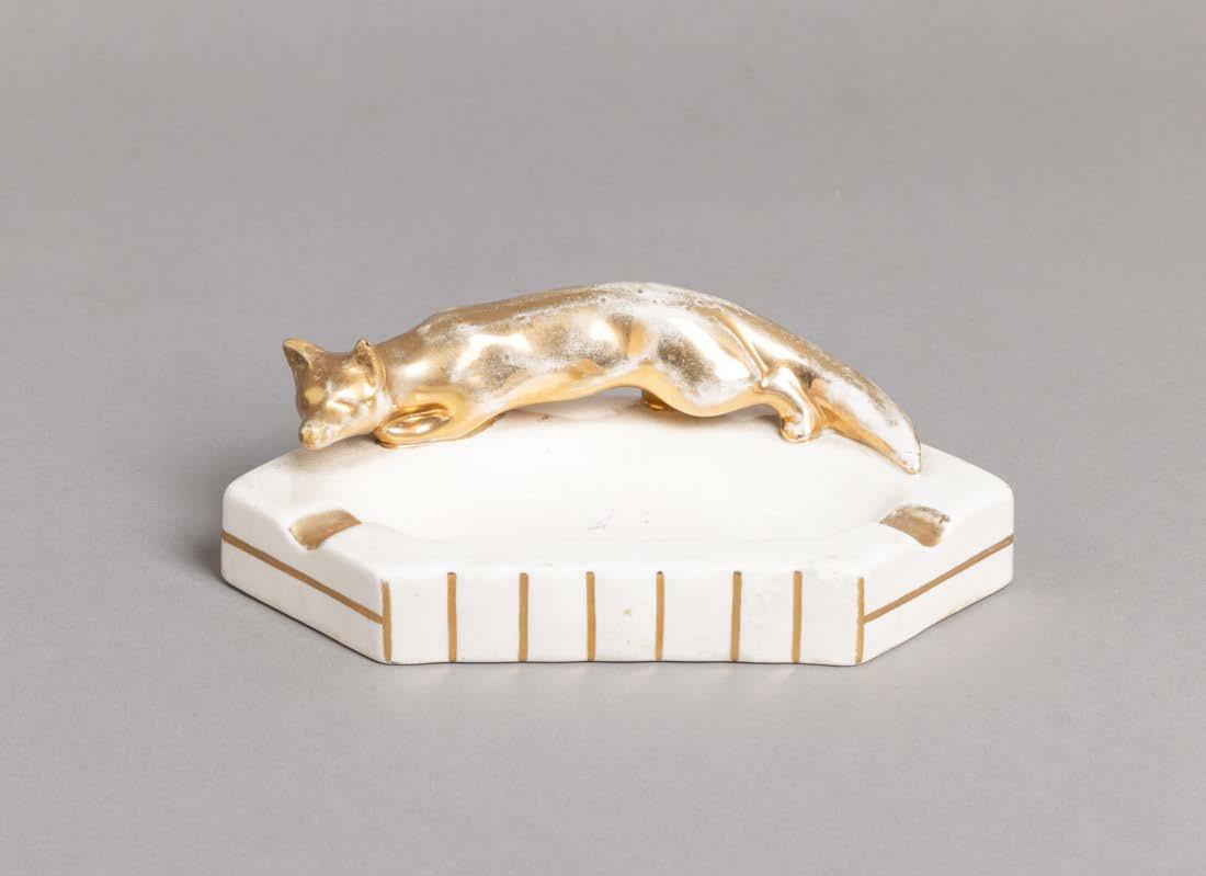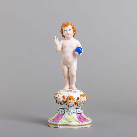 Em porcelana moldada (19241947), decoração policromada com armas portuguesas. Acompanha uma caixa de fósforos. Sinais de uso e pequeno defeito de fabrico.