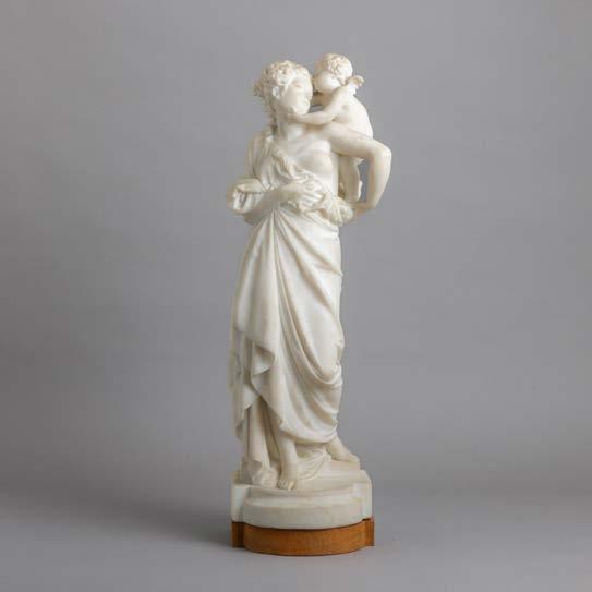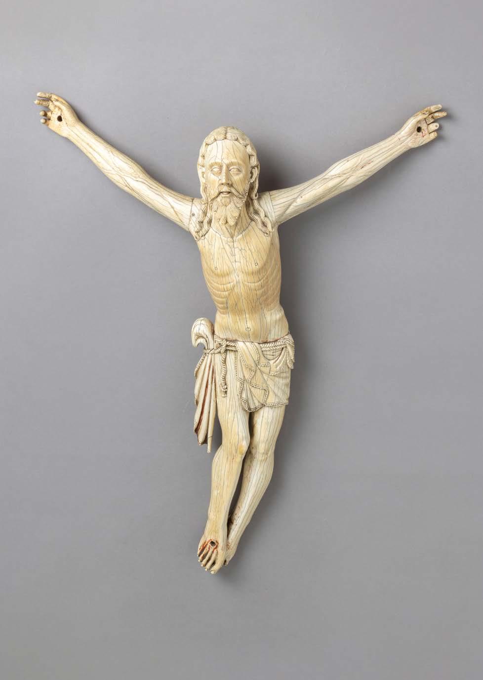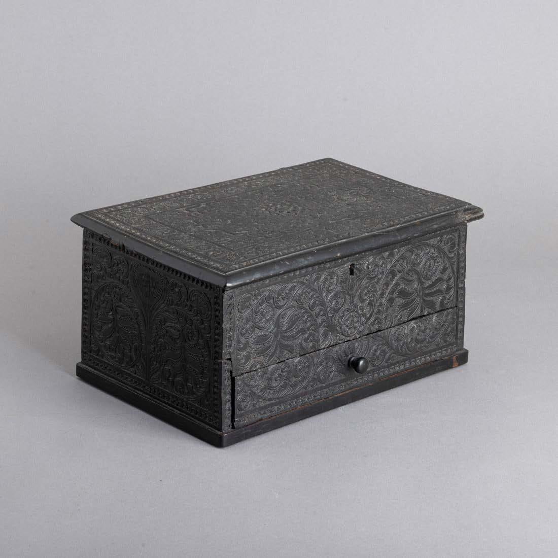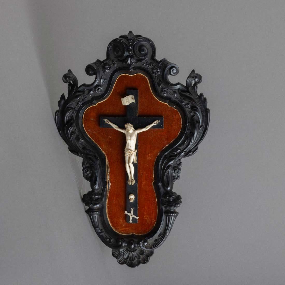 Esculpida em osso, decoração relevada “Putti com cestos de fruta”. Sinais de uso.