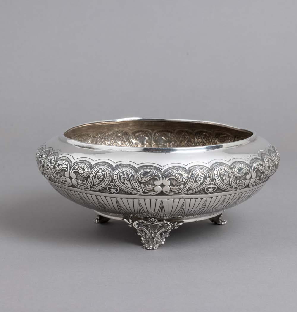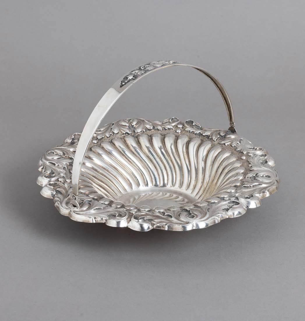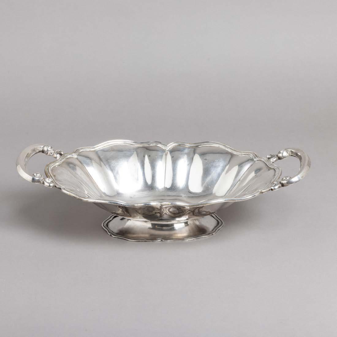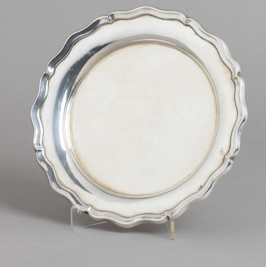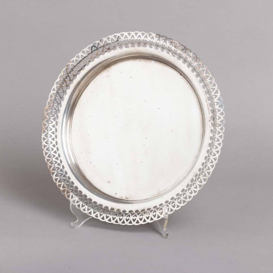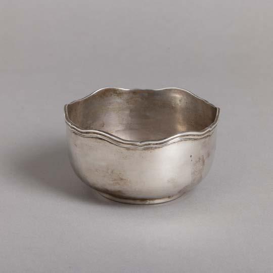 Em metal prateado, decoração lisa. Sinais de uso e fruteiros com pequenos defeitos.