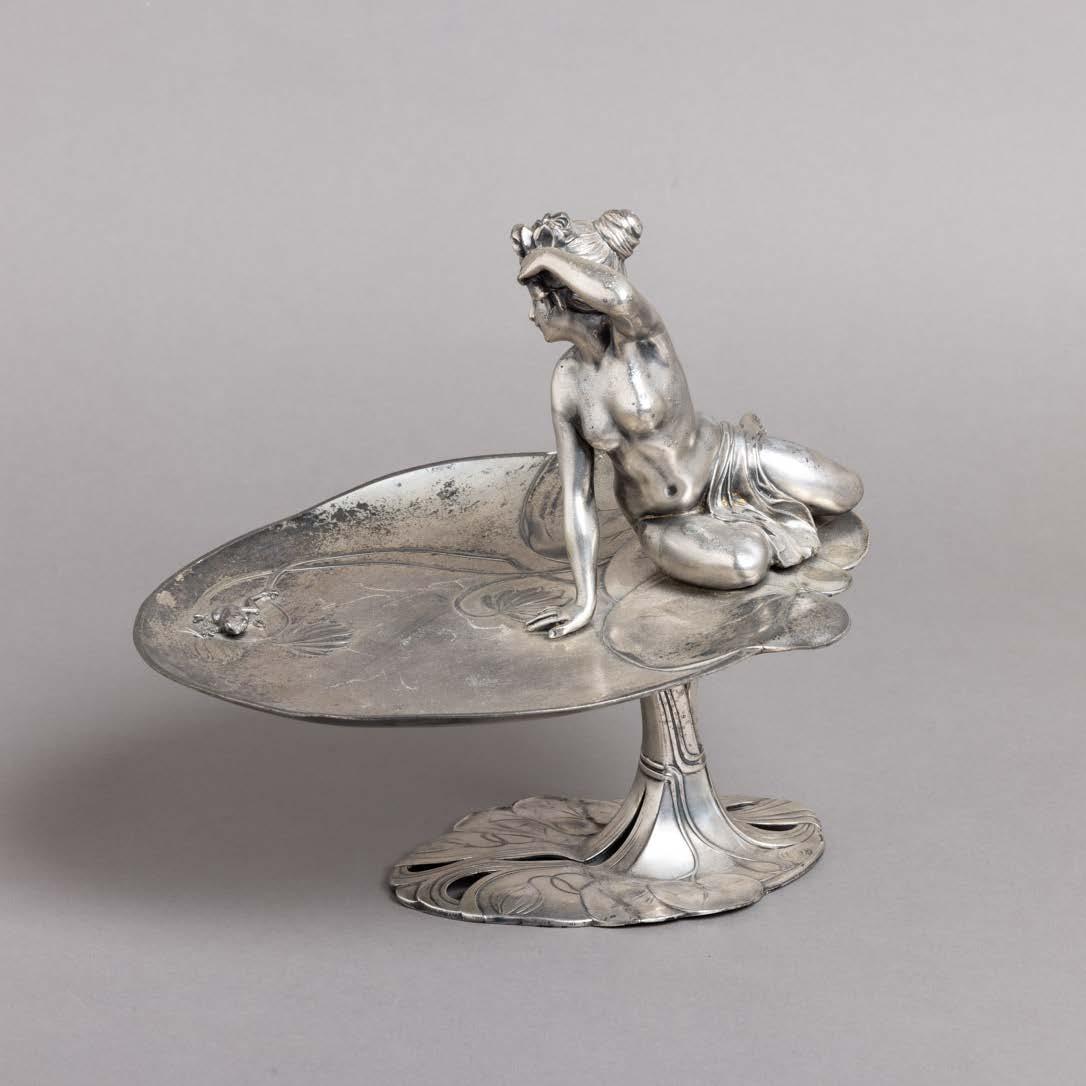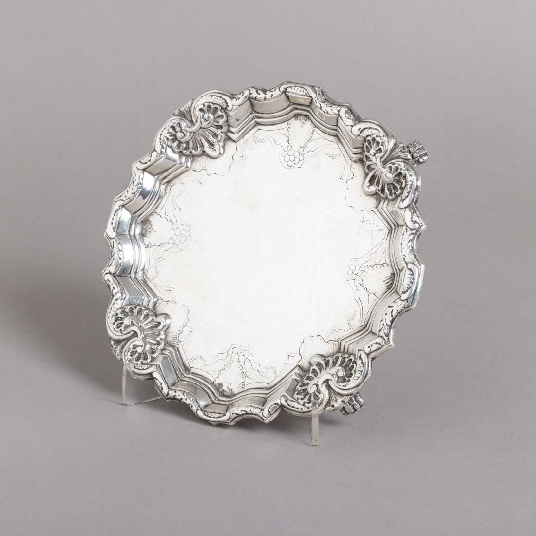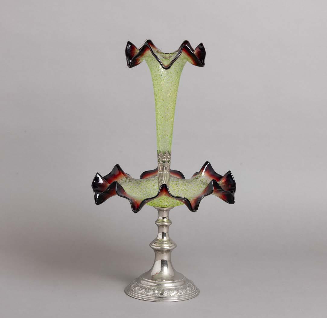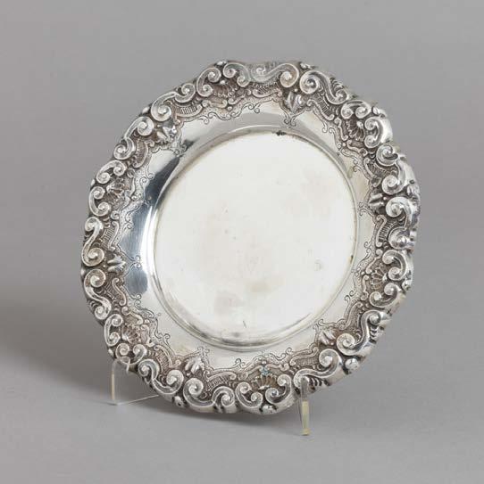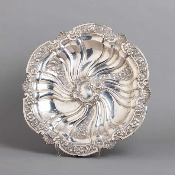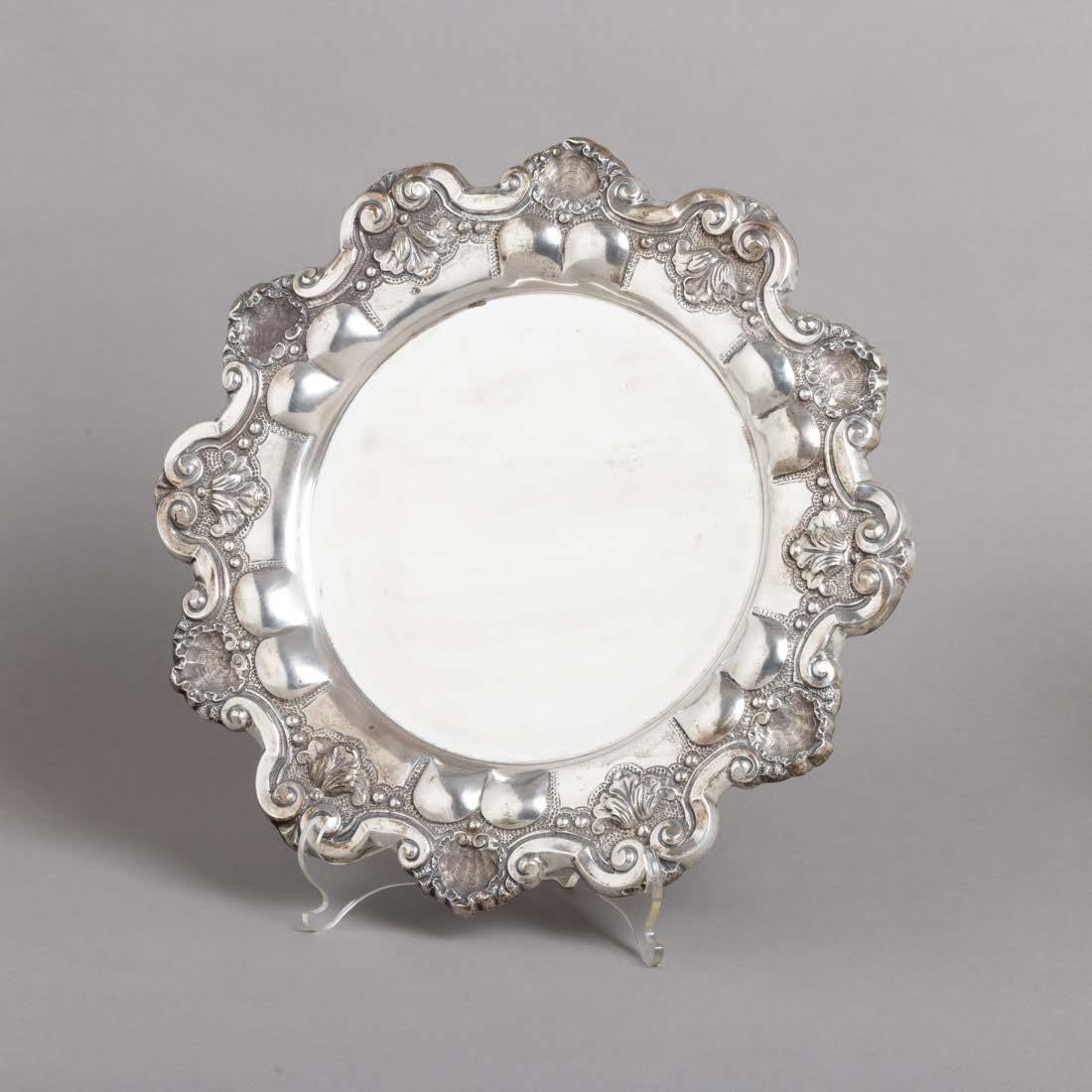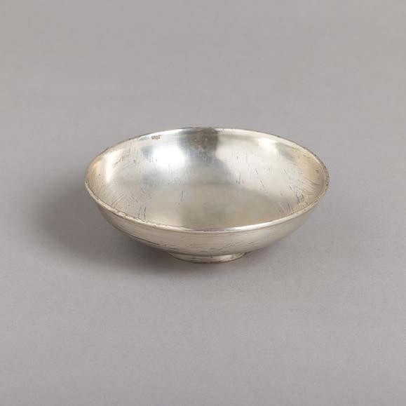 Em metal prateado, decoração lisa. Sinais de uso e fruteiros com pequenos defeitos.