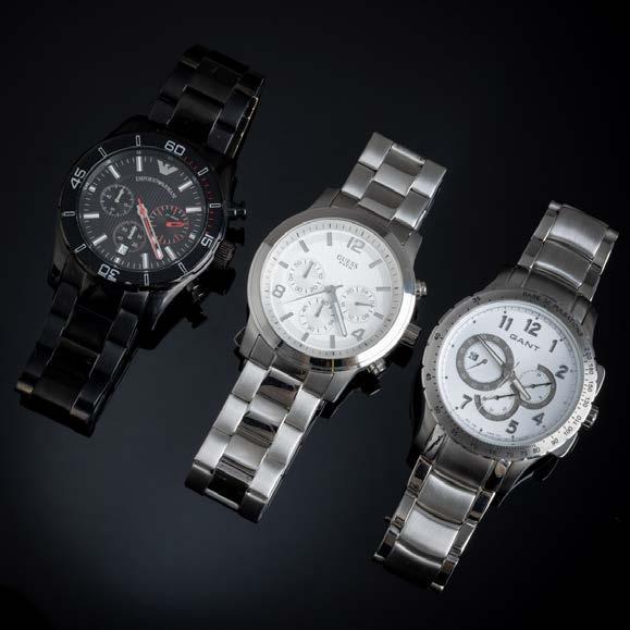 Em metal cromado e vidro, uma marcada “LUXOR”. Sinais de uso e oxidação.