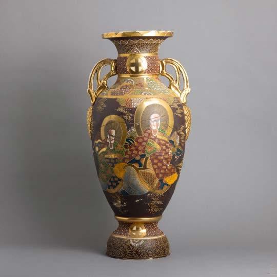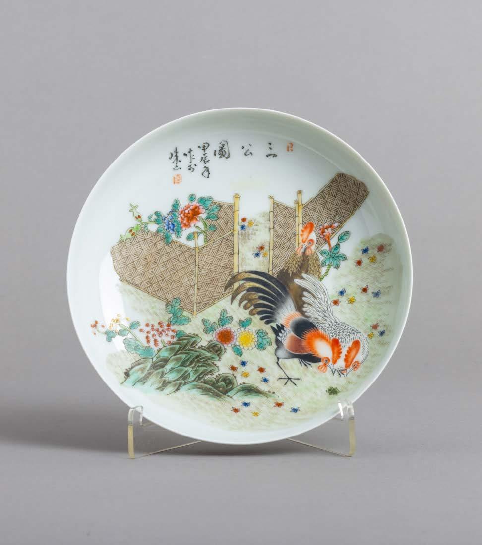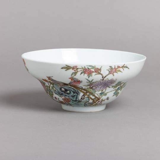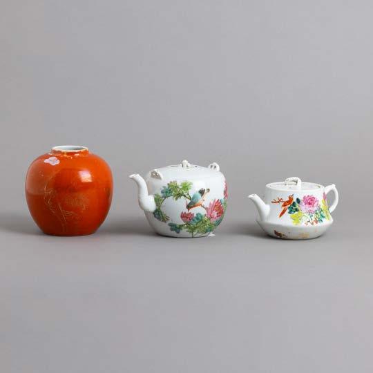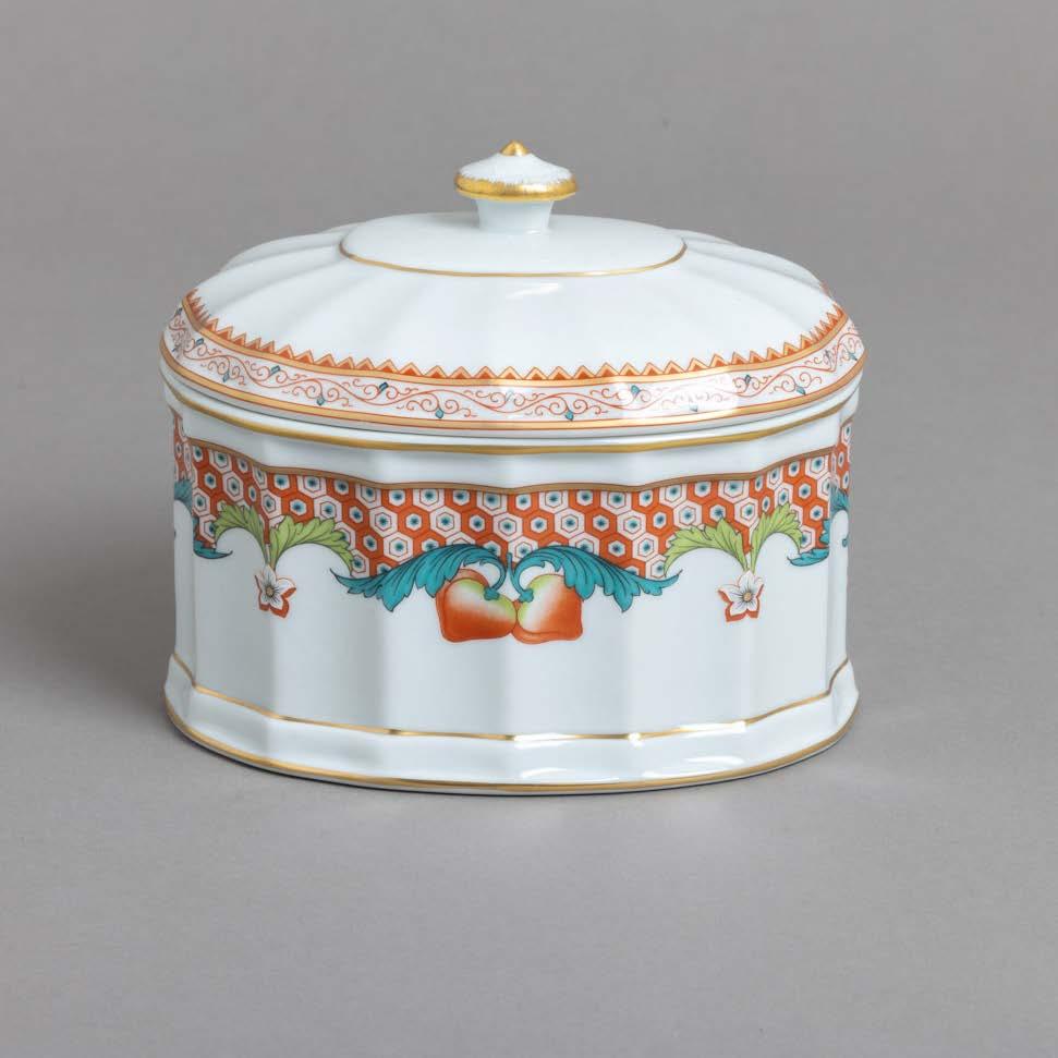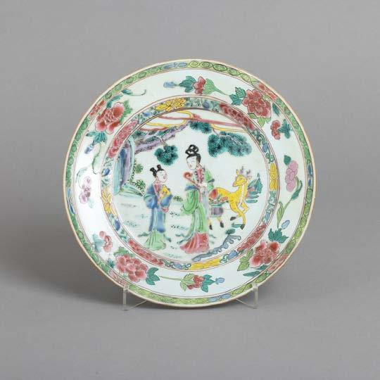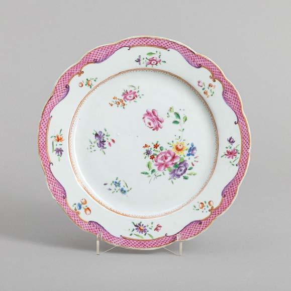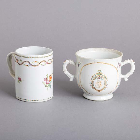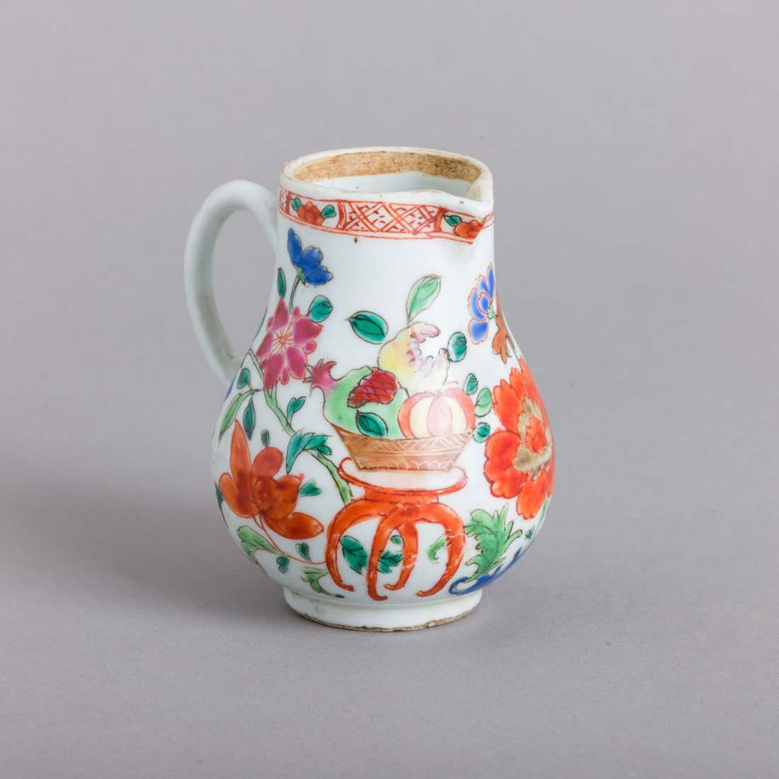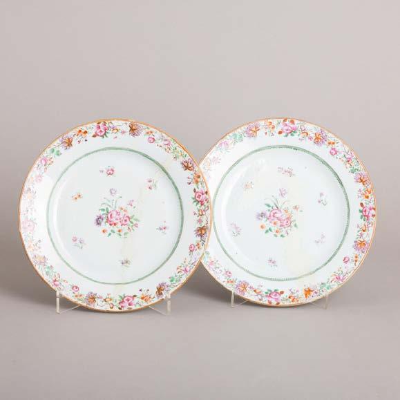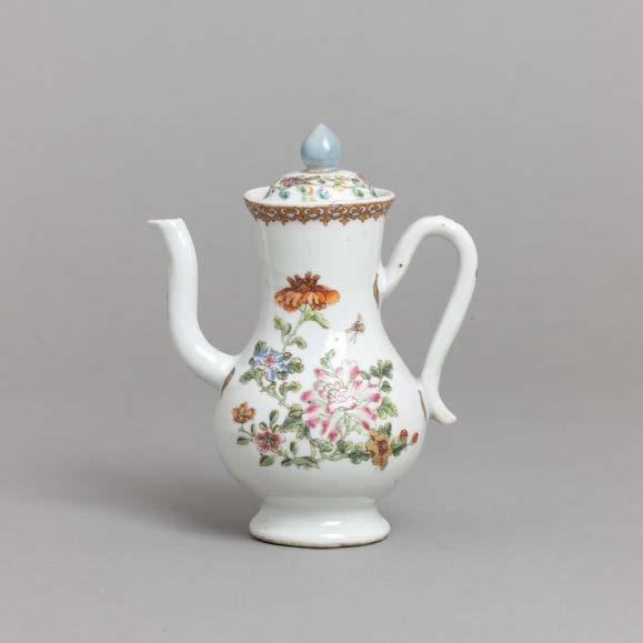 Em porcelana da China, Companhia das Índias, Séc. XVIII, decoração com esmaltes policromos da família rosa e dourado “flores”. Restauros e esbeiçadelas.